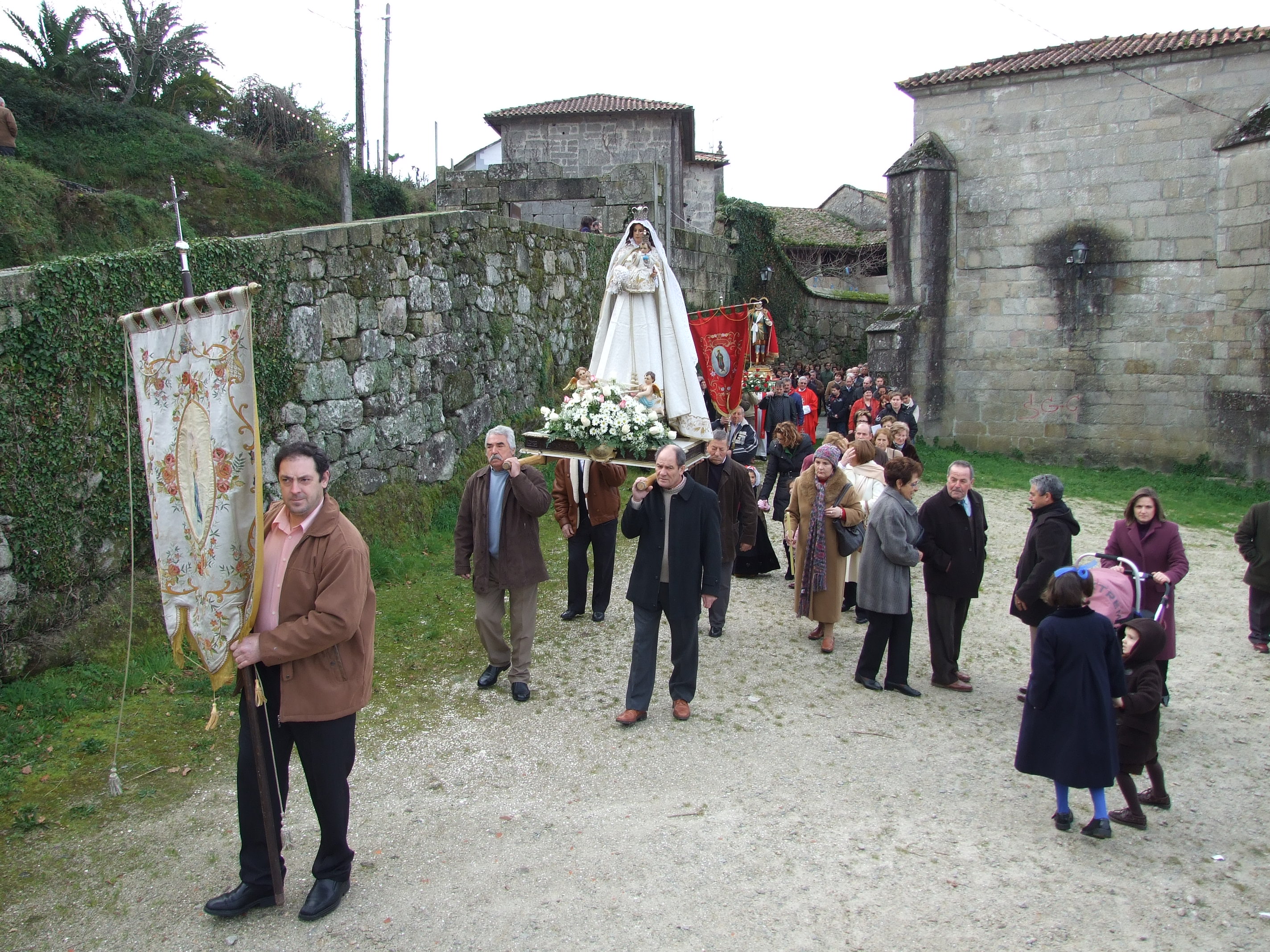 Y para poner algo de imagen en esta tradición popular, acompañamos tres imágenes de la procesión que, tal día como hoy, se celebró en el año 2009 en el entorno del precioso templo románico de esta parroquia.