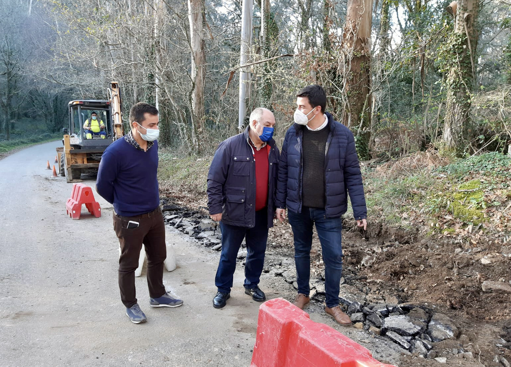 El concejal de rural Pablo Novas, acompañado de su compañero de corporación y área, Manuel Domingos y técnicos de la empresa adjudicataria de la obra, “EC Casas”, visitaron hoy el comienzo de las obras de instalación del colector en el que, según explicó Novas Caballero, “O Concello investirá case 159.000 euros con cargo ao Remanente de Tesourería neste proxecto, co que se dotará dun sistema de saneamento de augas residuais a esta zona do rural para revertir os problemas da actual depuradora de Pastoriza, que ten os días contados”.