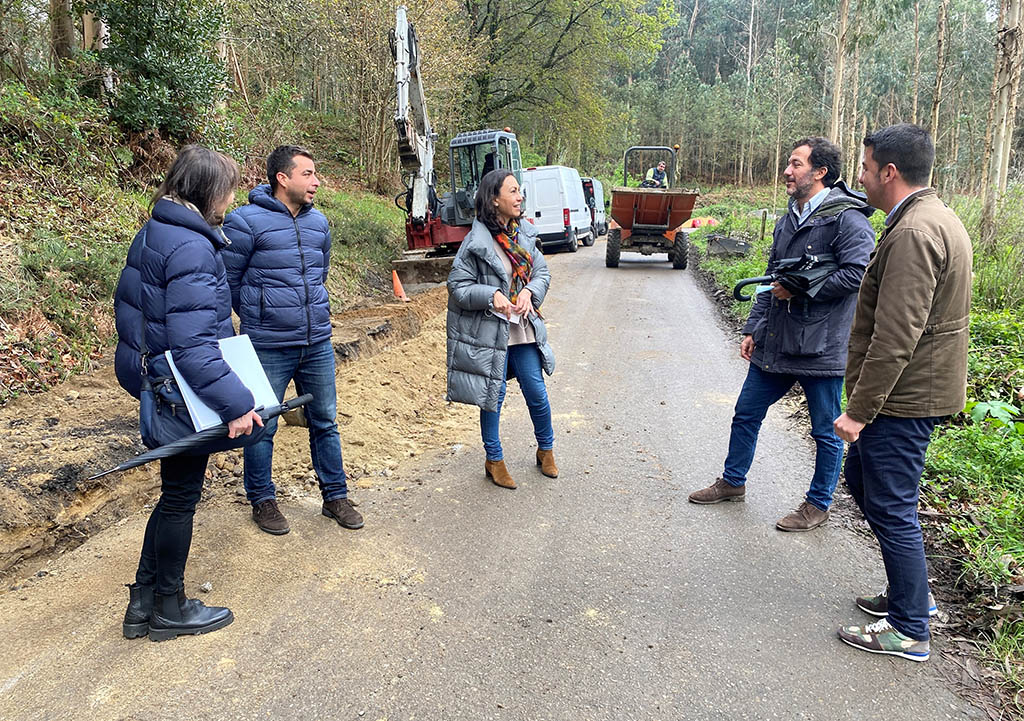 La regidora se reunió a pie de obra con los técnicos de la misma quienes explicaron que “Nestes momentos tense xa executado o 70% dos traballos, aínda que agora queda o tramo máis complexo, xa que se atopou bastante pedra e picala retrasa lixeiramente os labores de instalación da rede, que en total terá 1.670 metros de lonxitude”.