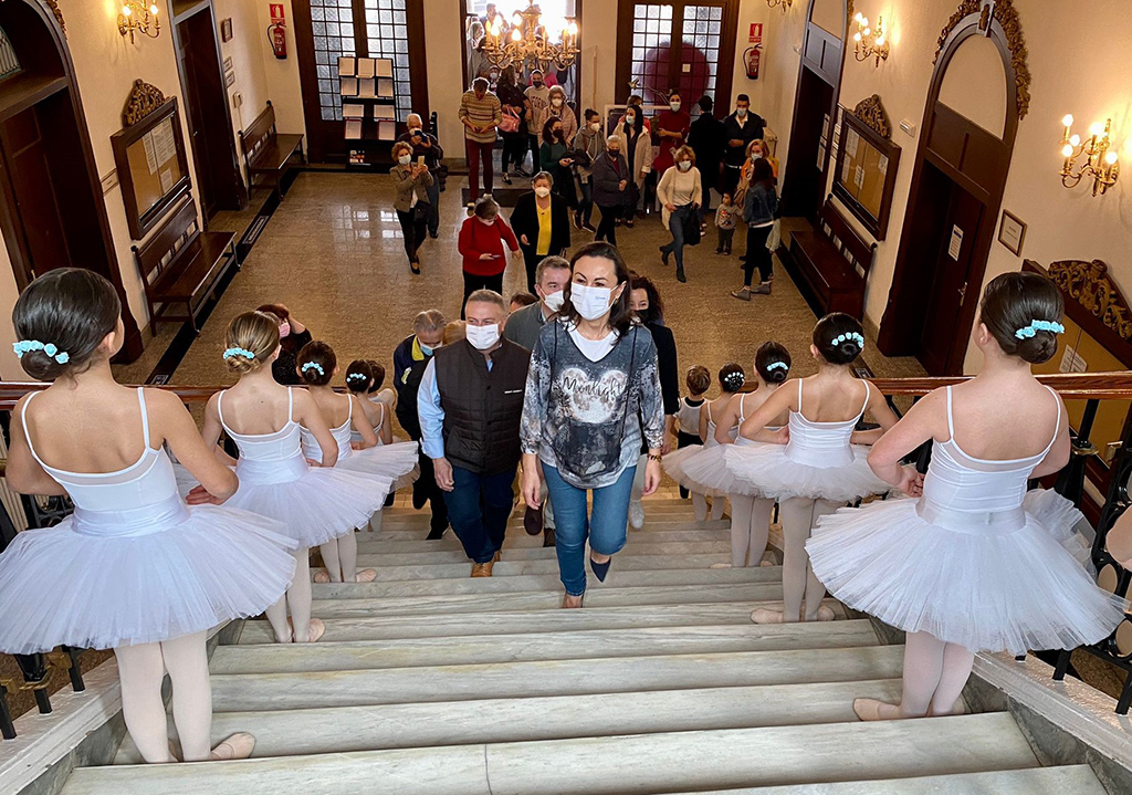 María Ramallo deseó Diego Landín y sus jóvenes alumnos la mejor de las suertes que les ayude a triunfar en esa final de Youth América Grand Prix América, uno de los certámenes más prestigiosos del mundo al que los chicos y chicas de este grupo acceden por méritos propios, no solo por el trabajo de preparación y entrenamiento intenso que precisan para tener semejante nivel, sino porque, si van a Florida, es porque se han clasificado nada menos que para tres categorías en el certamen que hace unos meses se celebró en Berlín. María Ramallo les insufló toda la ilusión de los marinenses y les recordó que probablemente tengan pocas ocasiones como esta para verse en semejante prueba que puede servir para algunos de ellos como verdadero trampolín porque van a ser observados por directores y responsables de las más importantes escuelas y compañías del mundo. La regidora añadió que el concello no podía dejar a ninguna de estas promesas sin poder viajar por posibles impedimentos económicos de sus familias y, en compañía del director de la escuela Diego Landín y otra profesora de la misma, fueron entregando a cada uno su subvención personal.
