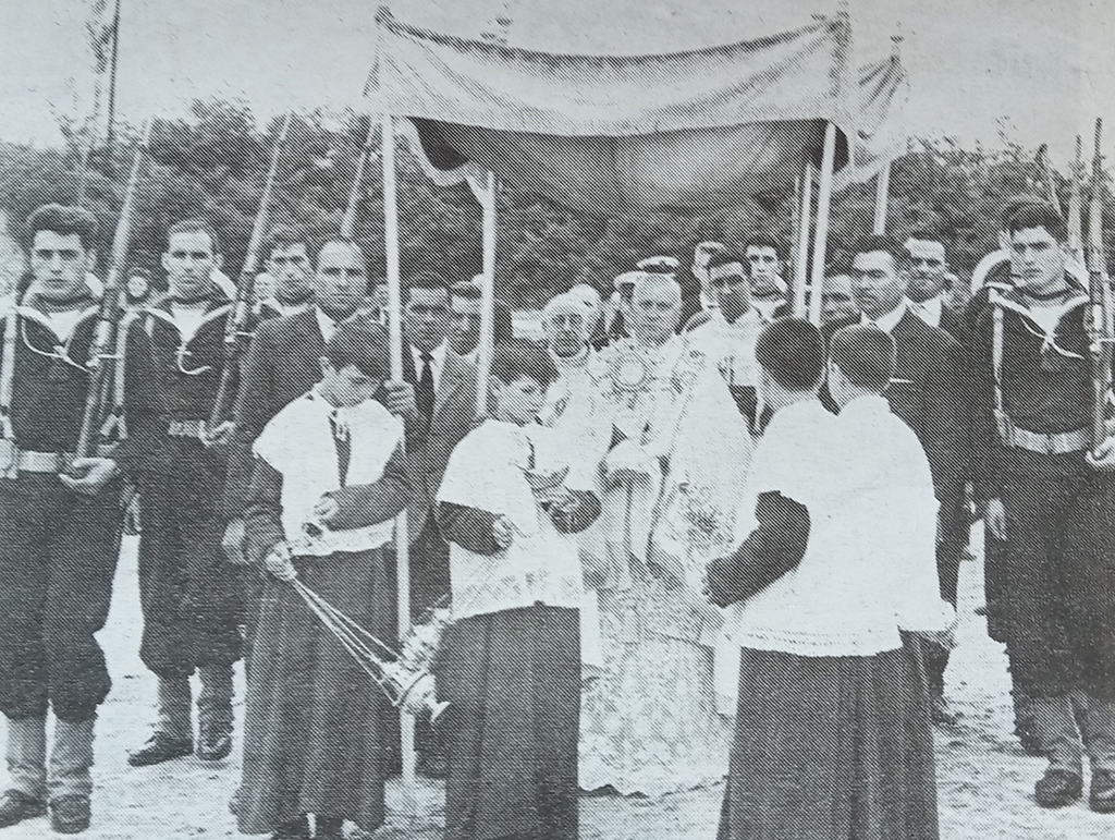 ¡¡¡ Que treinta de hace muchos años !!!....De aquella paraba la flota pesquera marinense para celebrar o día do Santiño. Los mareantes de nuestra “bisbarra” independientemente de las divisiones administrativas, bajo la batuta -económica inclusive- de los patrones de pesca de las distintas embarcaciones, se reunían entorno al templo parroquial de Los Placeres para rendir culto al santo protector y, digo entorno, porque con “capillas” tan cercanas como las de los Sres. Nistal , Sotilla en el Cabo y demás tenderetes montados para la ocasión repletos los mostradores de pulpo, empanadas variadas, mejillones al vapor y los más humildes cacahuetes regados convenientemente con excelentes caldos “alleos e do país “, hacían las delicias de la concurrencia “peregrina”... ¡¡¡TENDEIRO!!!....¡¡¡SÁCALLE A ESPITA O PIPOTE !!!....¡¡¡TODO CORRE PO LA MIÑA CONTA!!!.... jaleaba el patrón de turno.