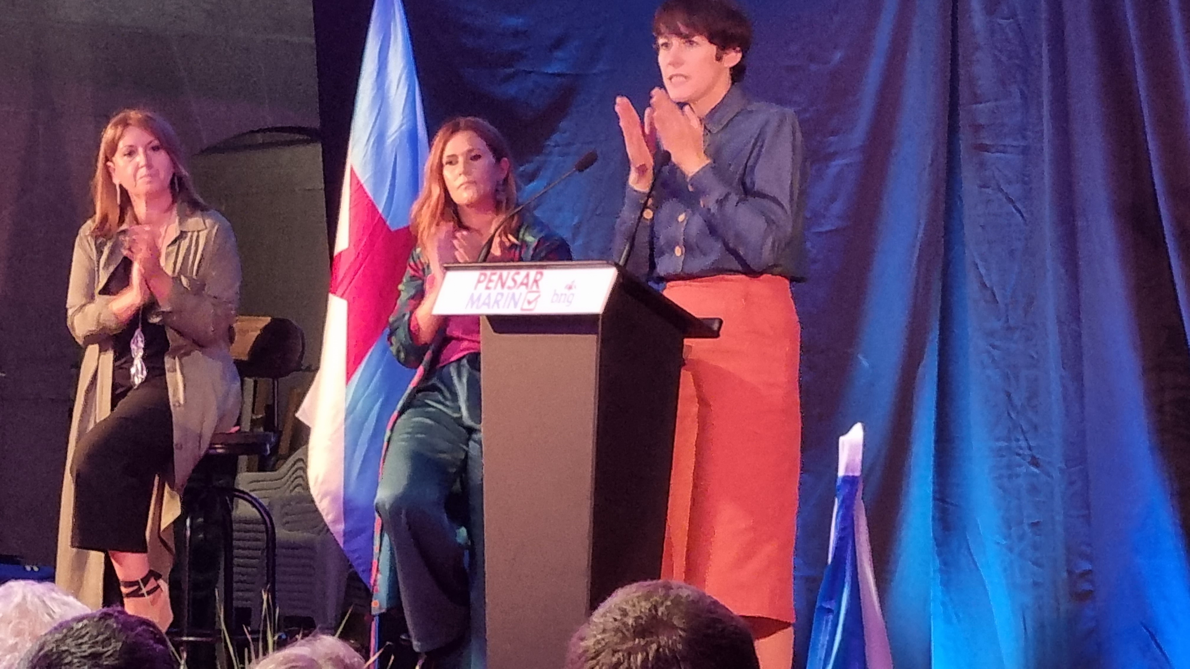 Tres mujeres fueron las que intervinieron en el acto de presentación de los diez primeros miembros de la candidatura del Bloque para las municipales de Marín y tras la intervención a modo de presentación de la alcaldesa de Allariz tomó la palabra la portavoz nacional del partido, Ana Pontón, que empezó por acordarse de los marineros fallecidos en el Villa de Pitanxo hará hoy 8 meses, para referirse a continuación a Lucía Santos de la que dijo que es la alcaldesa que necesita Marín, poniendo como ejemplo tanto las políticas del BNG como la acción de sus alcaldes, algunos allí presentes, haciendo mejores sus respectivos pueblos. Tras depositar toda su confianza política en la candidata marinense Pontón criticó las políticas de la Xunta de Galicia que a su juicio está teniendo una actitud pasota ente los principales problemas de los ciudadanos gallegos como son la pesca o la energía de la que somos productores. Tras su disertación, que fue interrumpida varias veces por los aplausos de los asistentes, la responsable del BNG insistió en destacar la personalidad de Lucía Santos y asegurar que será la próxima alcaldesa de esta villa.