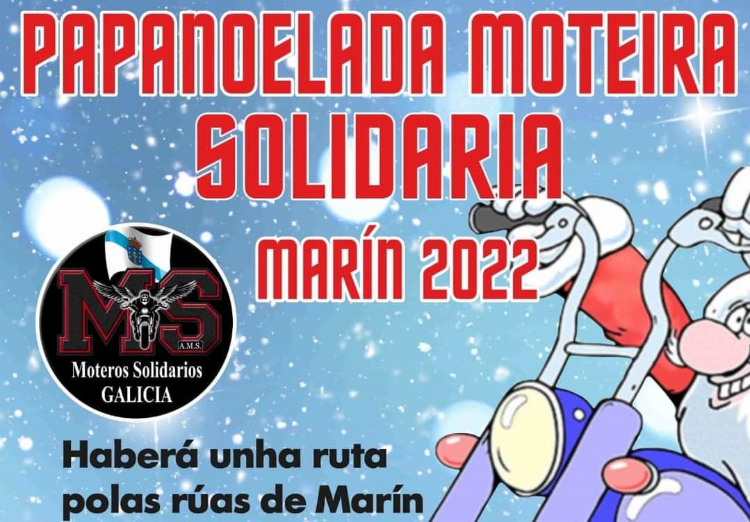 La tarde del sábado día 17 volverá a ser para los moteros solidarios que se van a reunir como todos os años en Marín a partir de las cinco de la tarde ataviados como de costumbre con la vestimenta propia de Papa Noël La concentración será en la Plaza de España, frente a la Escuela Naval Militar y una vez que el grupo se haya compactado se dará la salida a una ruta por todo el entorno rural y urbano dando a la tarde de ese sábado un ambiente especialmente navideño.