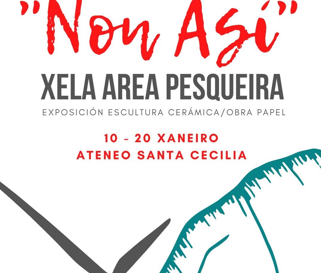 A sala de exposicións do Ateneo Santa Cecilia ten o pracer de recibir a obra da artista Xela Area Pesqueira baixo o título de "NON ASÍ", coa súa obra de escultura cerámica e obra en papel que se poderá desfrutar dela do 10, data na que terá lugar a inauguración da mostra, ata ao 20 de xaneiro, no local do propio Ateneo (Rúa do Forno, 42, baixo)
