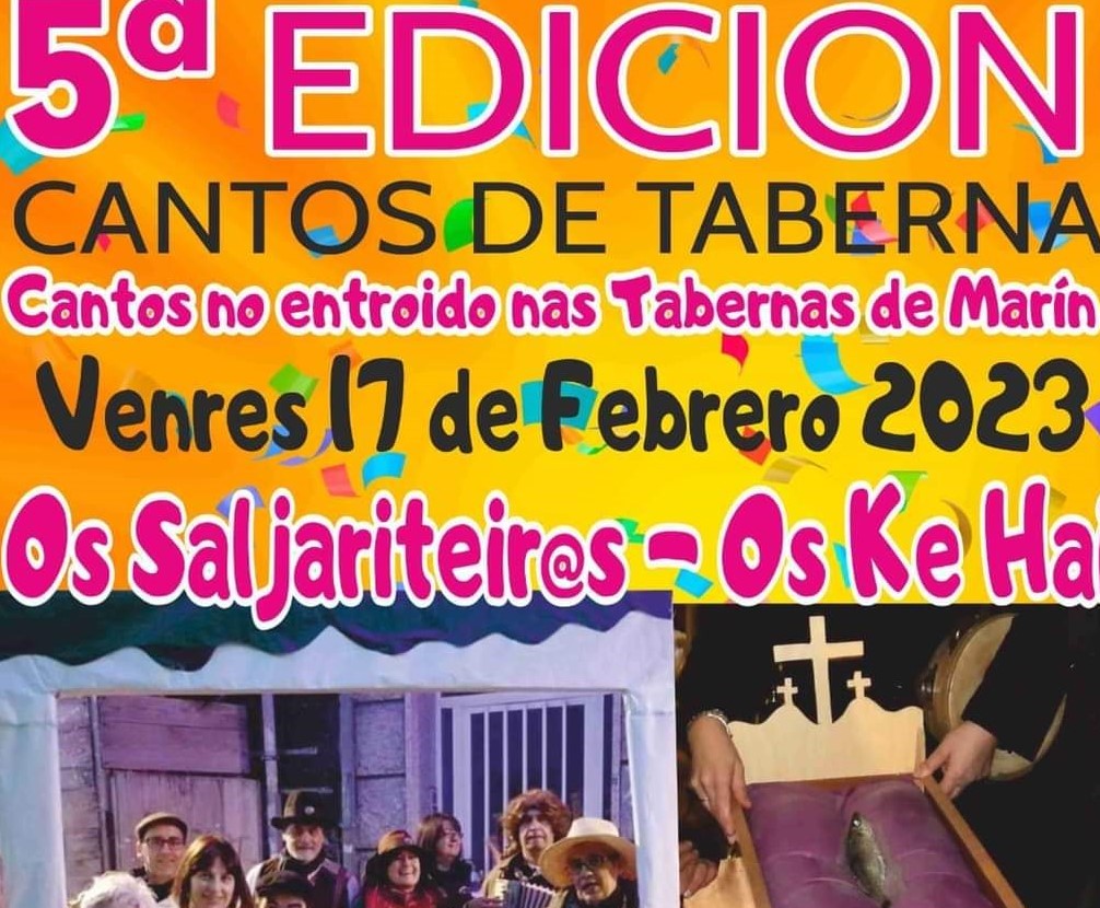 El intenso programa de Entroido se inicia hoy en Marín con el aperitivo de los Cantos de Taberna que organiza el animoso grupo “Os Saljariteiros” que alternarán con otra agrupación invitada las visitas a los distinto locales designados previamente
