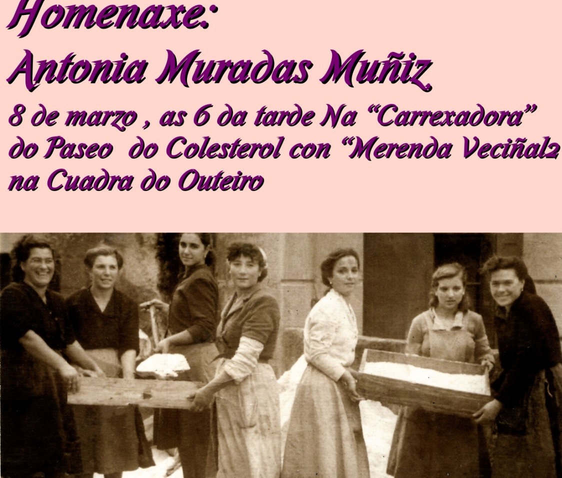 Pero no solo será la programación municipal propiamente dicha sino que, por ejemplo, el colectivo vecinal de Cantodarea “Asociación A Fonte” celebrará un entrañable acto de homenaje a las “Salgadeiras” y de todas las mujeres que en ese oficio trabajaron, en la persona de Antonia Muradas Muñiz que en la fotografía que ilustra el cartel anunciador del acto aparece por la derecha en tercera posición.