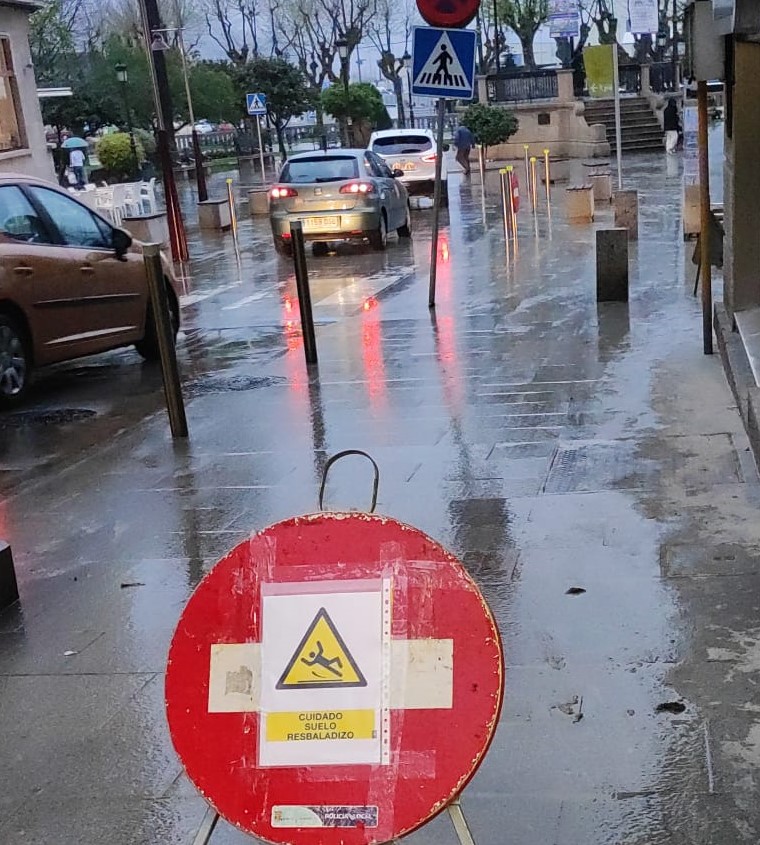 Nos aseguran que se llamó al ayuntamiento pidiendo una solución que tardó varias horas hasta que, por fin se colocó una señal de alerta por superficie resbaladiza.