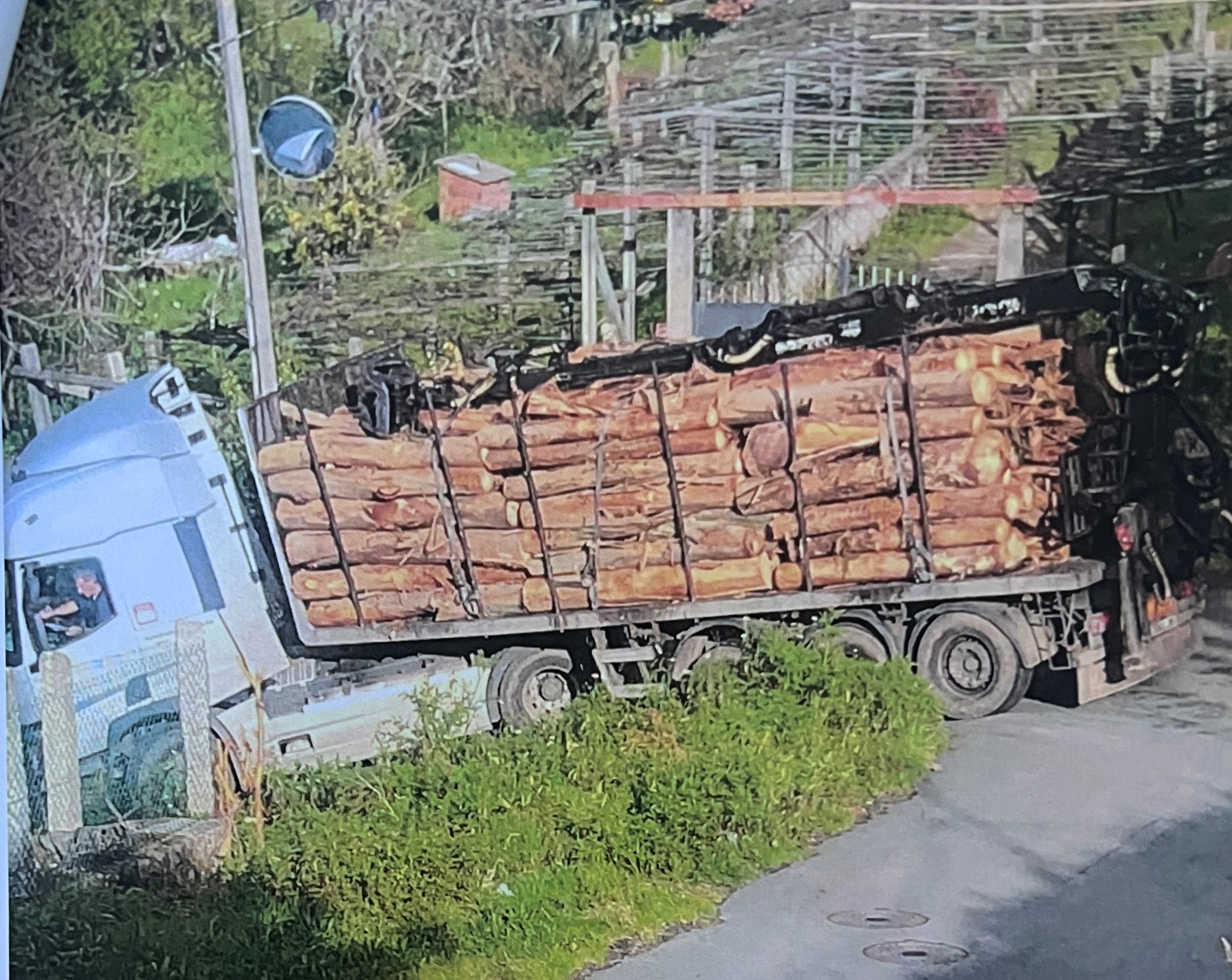 - Un vehículo pesado con frenos recalentados impactó contra un cierre de una finca después de pasar la curva en horquilla arriba mencionada.