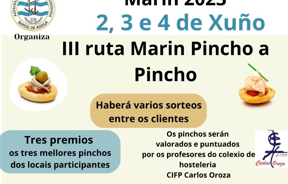 La asociación Botón de Ancla ya tiene cerrado el cartel de la "lll ruta Marín Pincho a Pincho" y el cartel de las actuaciones que se celebrará los días 2 3 4 de junio