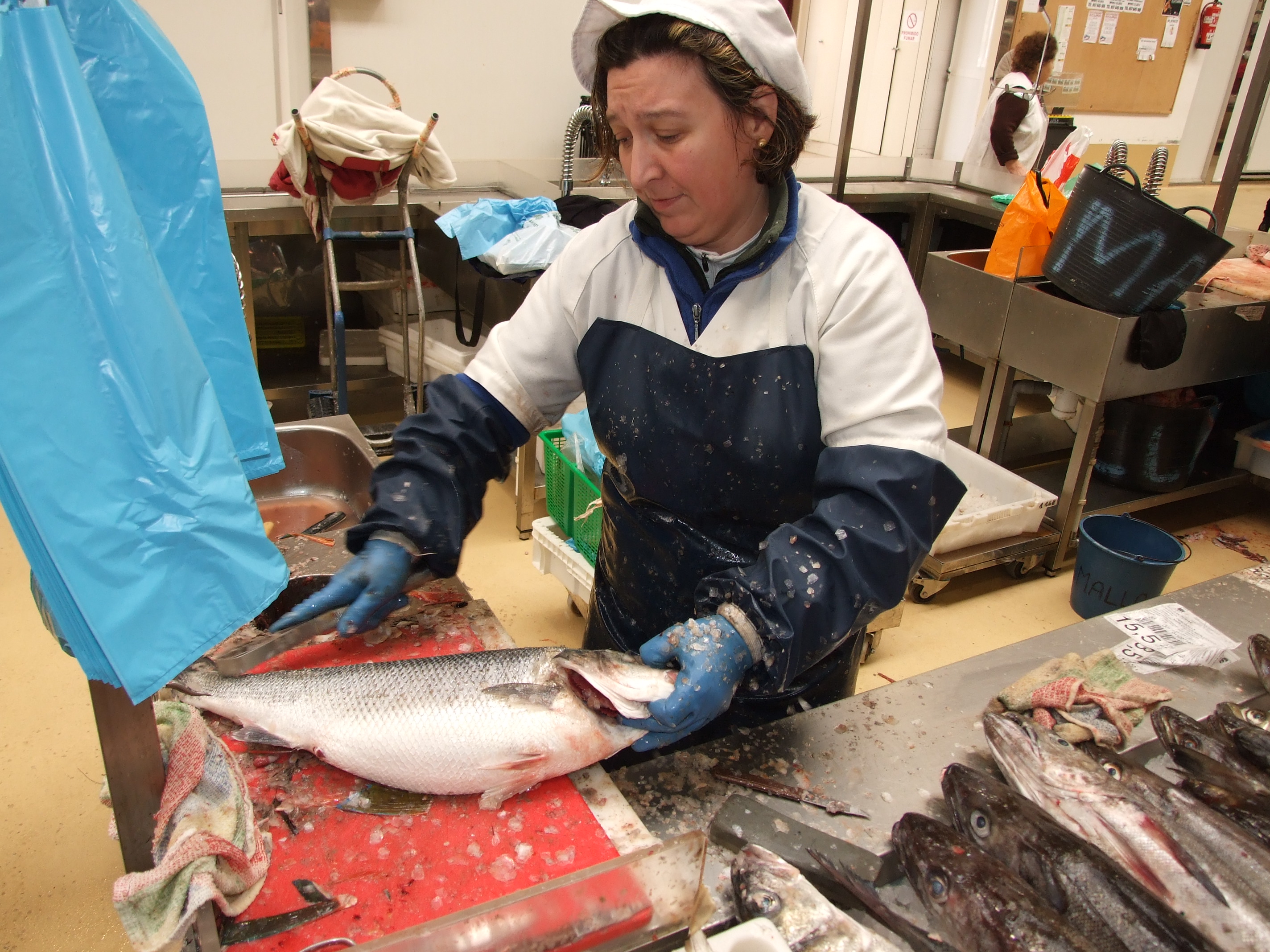 Begoña Rosales, presidenta de la asociación en pleno elaborado de pescado