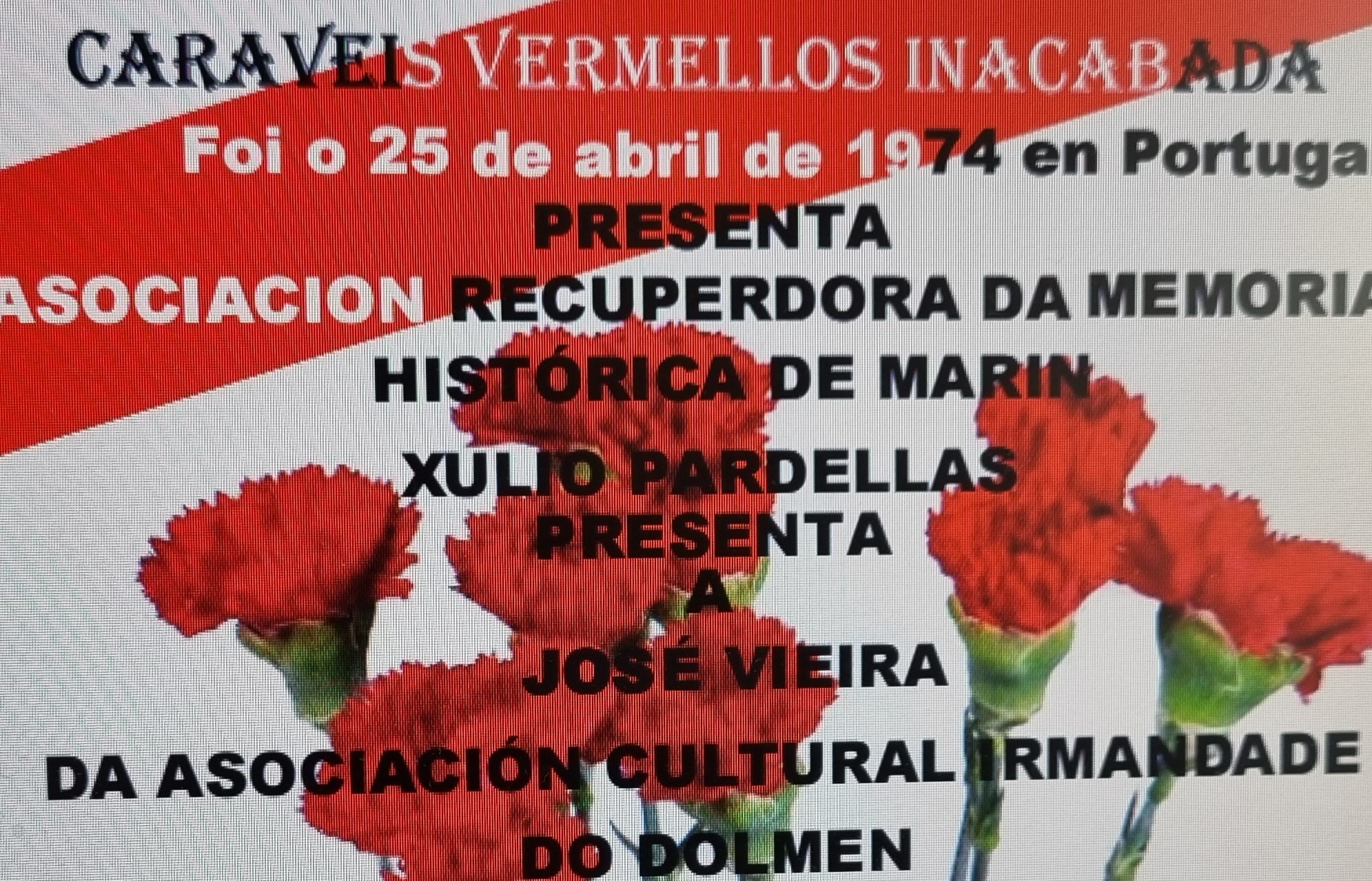 La presentación del acto correrá a cargo de Xulio Pardellas de Blas, miembro de la Asociación de la Memoria Históricca de Marín y se enmarca en la conmemoración del aniversario de la revolución portuguesa del 25 de abril de 1974 que culminó con la caída de la dictadura militar de Salazar y cuenta con la colaboración de la “Asociación Cultural Irmandade do Dolmen”, de Moaña.