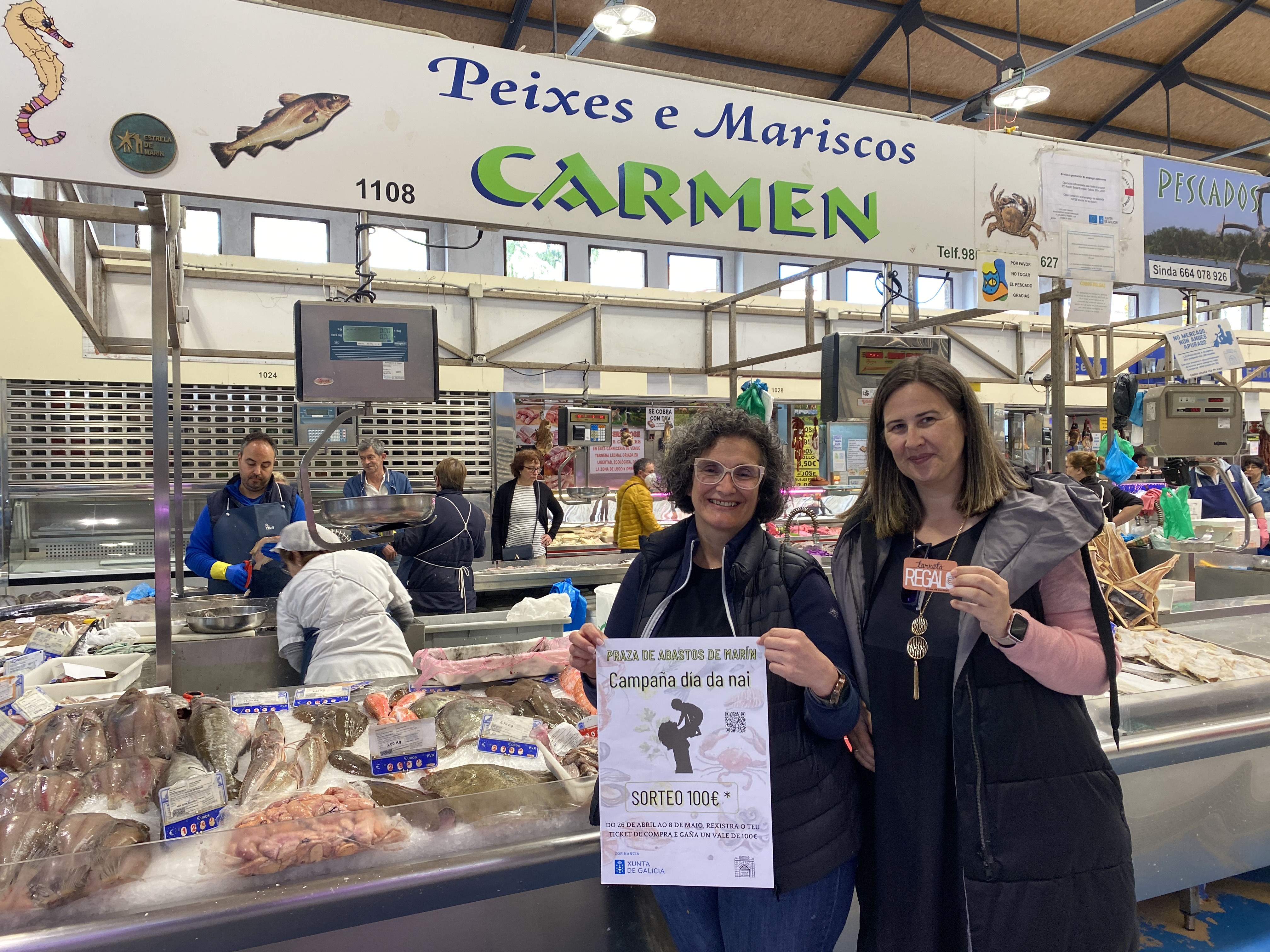 Mª José Gonzalez Carballo resultó ser la agraciada con el premio en el sorteo que, por el Día de la Madre, efectuó el recinto de la Plaza de Abastos convocado por su asociación de vendedores integrada en “Estrela de Marín”. La agraciada con un vale compra de cien euros recibió el premio de manos de la propietaria del puesto donde hizo la compra que le trajo la suerte.