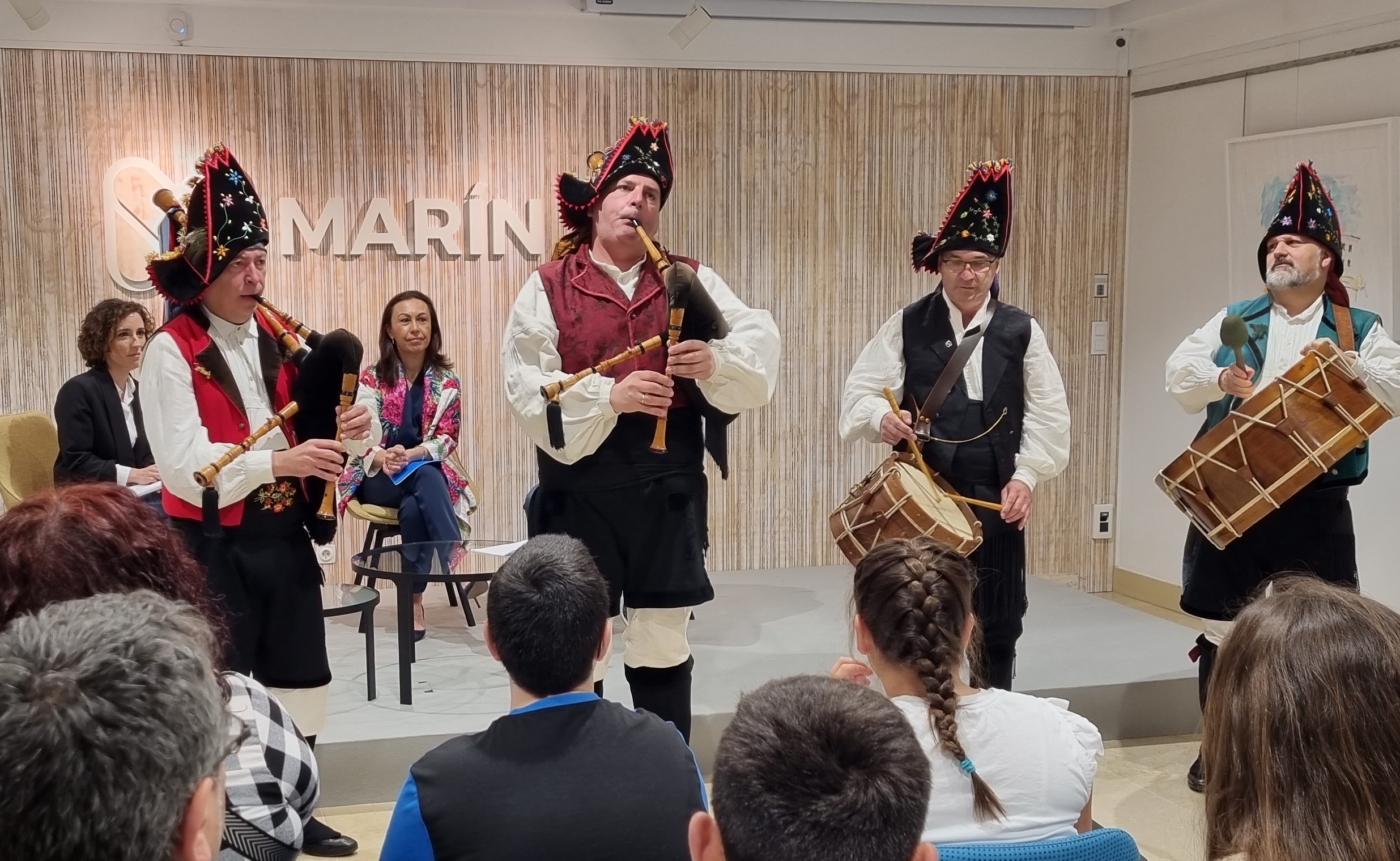Como ya es tradicional en este acto, la música fue puesta por el cuarteto tradicional “Picuiña” que interpretó varias piezas del folclore gallego iniciadas con la Alborada de Veiga y finalizadas con el Himno de Galicia siendo su actuación muy aplaudida por el público asistente.