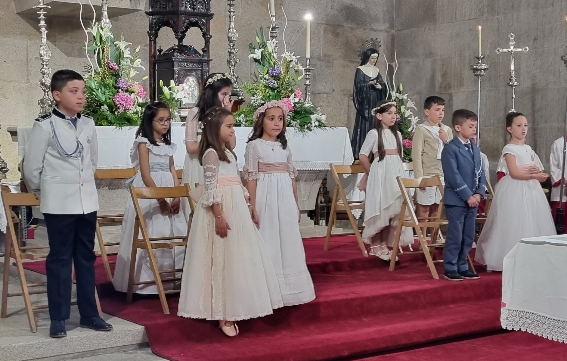 Los niños y niñas de primera comunión en el Altar Mayor
