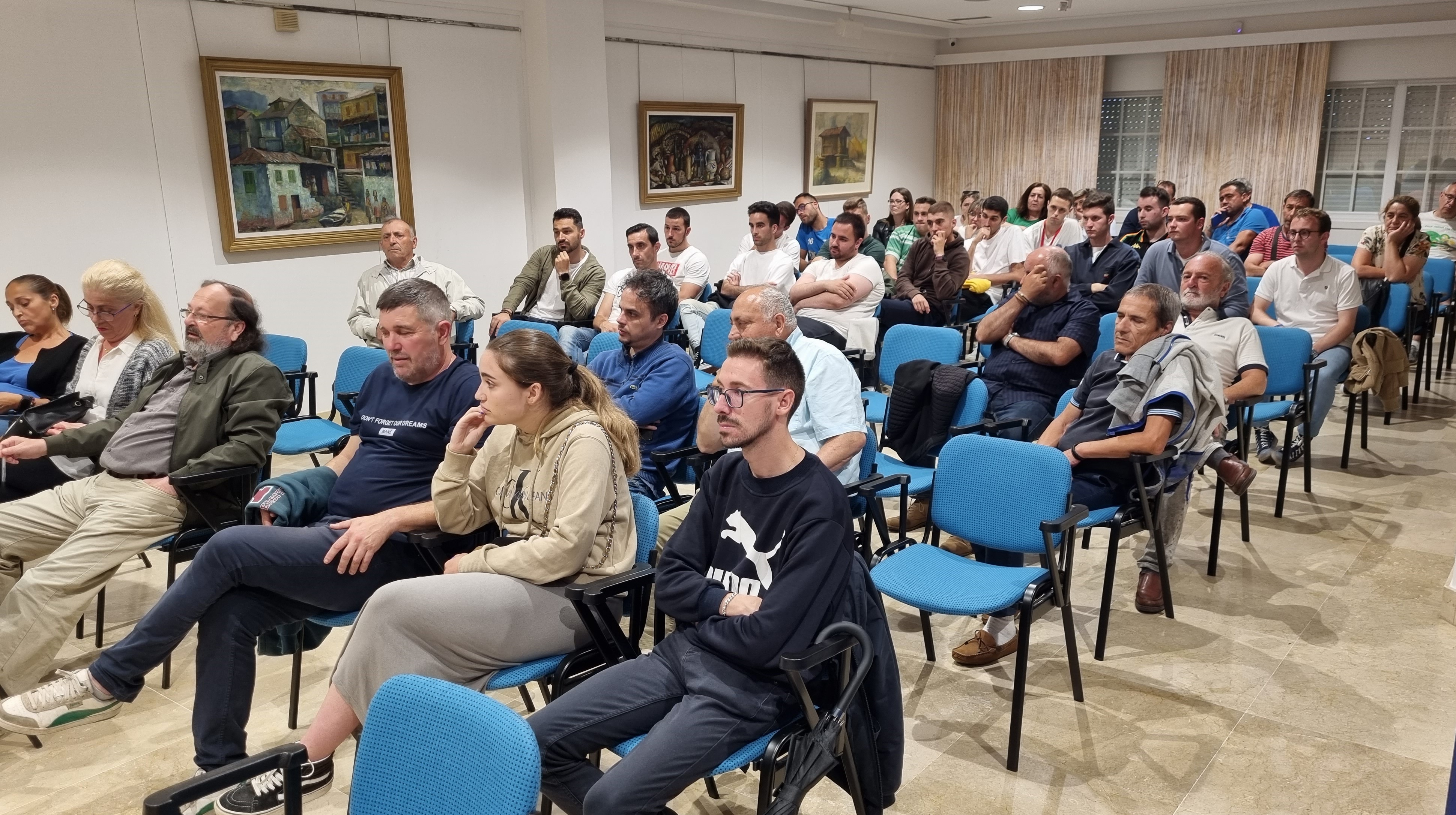 Asistentes a la asamblea con presencia de los jugadores del equipo
