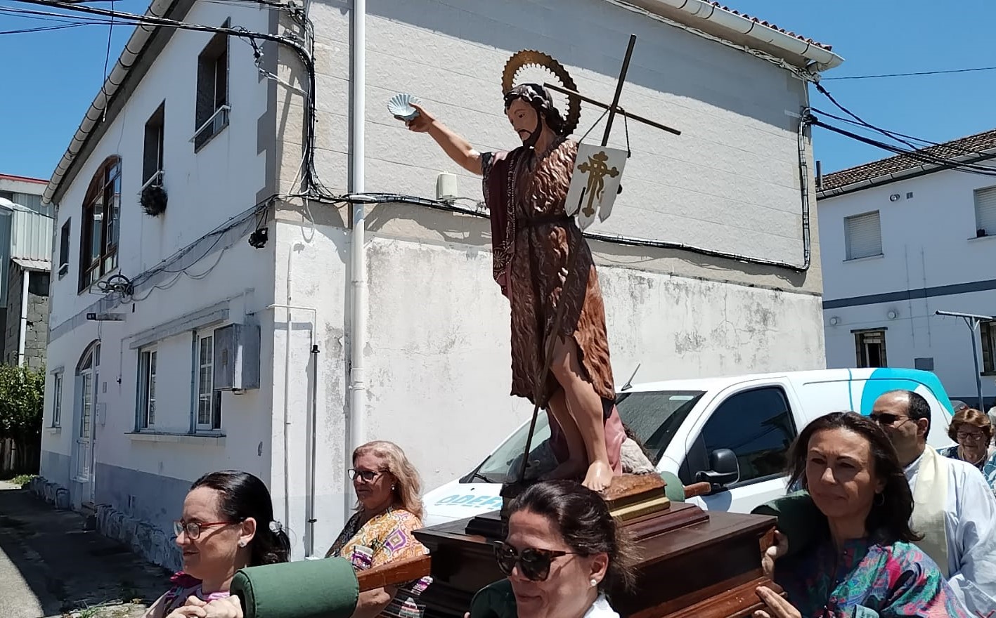 La curiosidad estuvo en que la imagen de San Juan fue portada en esta ocasión por las concejalas del grupo de gobierno Marián Sanmartín y Mónica Viqueira, por delante, e Itziar Álvarez y la mismísima alcaldesa María Ramallo, cerrando porte, lo que llamó la atención de los vecinos que participaron en el acto.
