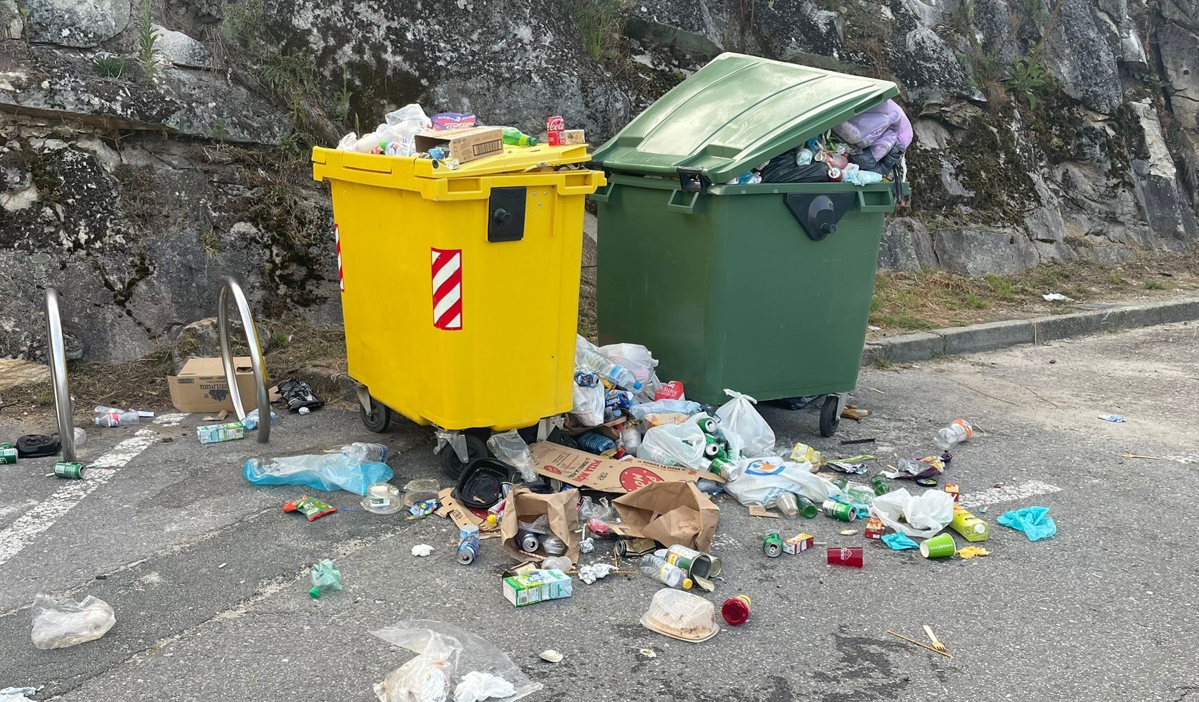 Nos llegaban ayer unas fotos denuncia de la basura que rodeaba los insuficientes contenedores ubicados frene a la principal salida de la playa de Mogor. Evidentemente eran el producto de la acumulación de desperdicios procedentes de la noche de San Juan y del fin de semana mismo pero la evidencia es, como se puede comprobar en la foto que reproducimos,
