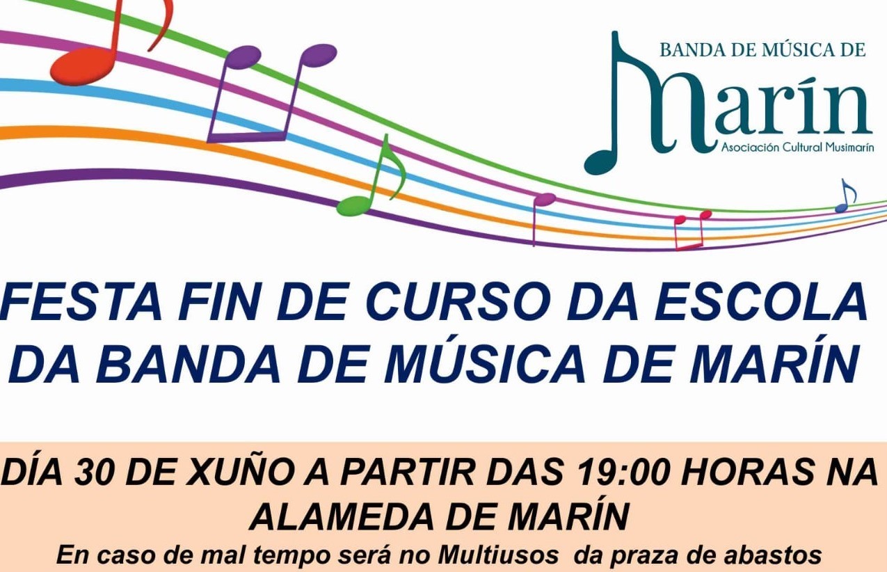 Día 30, se acaba el mes y se acaban la mayoría por no decir todos, los cursos escolares o las actividades en las distintas escuelas de ésta o aquella especialidad, Y una de las escuelas de mayor importancia en Marín es la de la Banda de Música que hpoy baja el telón
