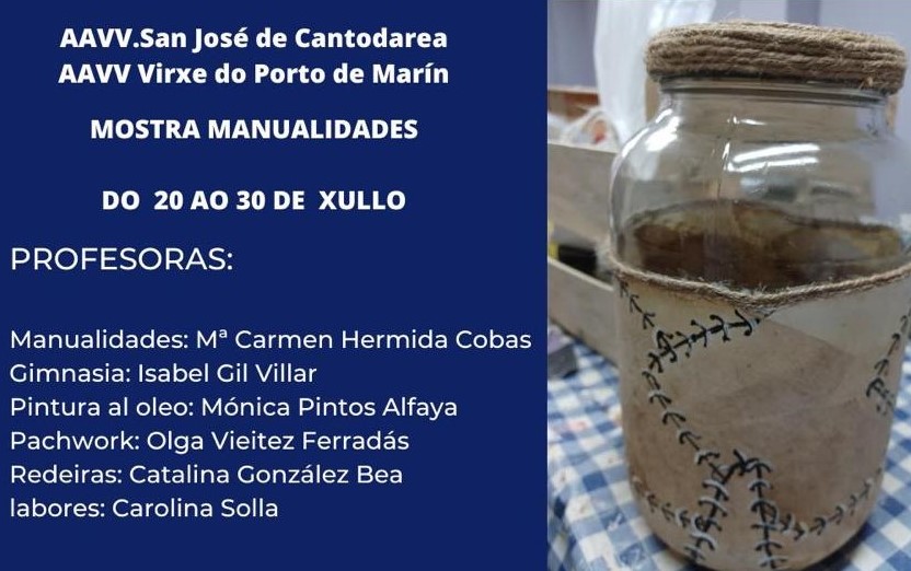 Las asociaciones vecinales “San Xosé de Cantodarea” y “Virgen del Puerto”, concentran, desde hoy y hasta el próximo día 30 de julio, los trabajos realizados durante los respectivos cursos de actividad por las personas que frecuentan los talleres de ambos colectivos.