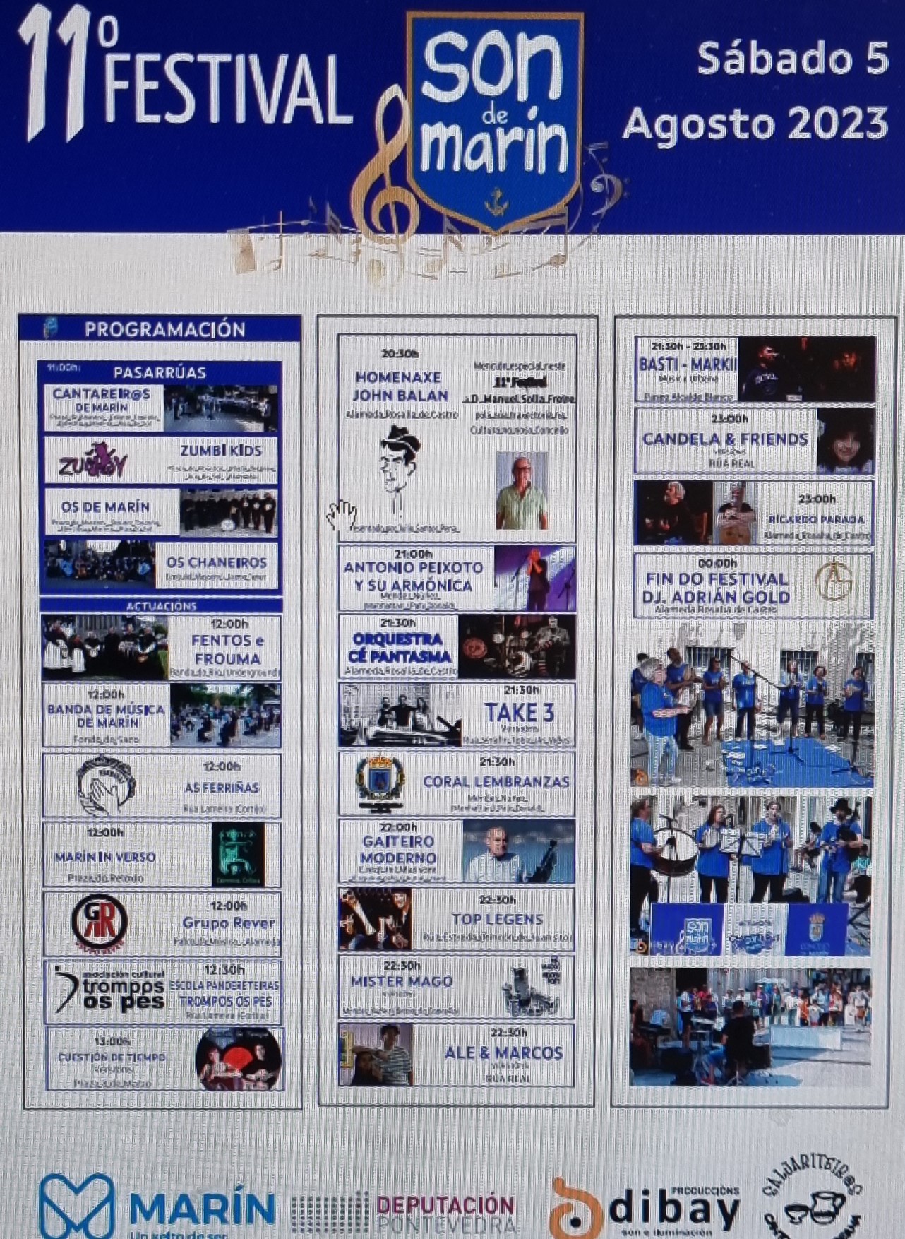 Veintitrés aerán las actuaciones que se desperdigarán por las calles y plazas de Marín durante el próimo sábado aunque el viernes tendrá lugar el “Marín canta” con la actuación de “Os Saljariteiros” en la alameda Rosalía de Castro. La jornada gira en torno a la personalidad de John Balan al que también el viernes pero de mañana se le hará una ofrenda floral ente el panteón donde desansan sus restos mortales.