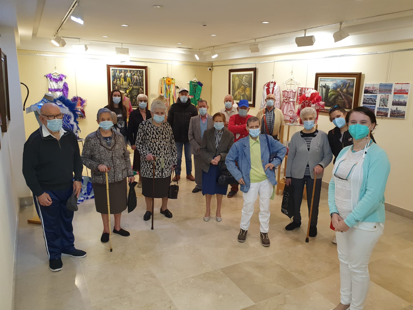 Los participantes en la visita, disfrutaron doblemente ya que, por un lado, pudieron ver de cerca en exclusiva ya que se cerró el museo mientras ellos estaban dentro con todas las medidas de seguridad anti-virus, y por otro, fue una buena ocasión de salir del centro en donde han estado durante un año más confinados que el común de los vecinos por el Covid-19. Itziar Álvarez, que hizo de anfitriona del centro, aseguró, “foi moi emocionante velos gozar e lembrar anécdotas xa non só coa exposición das comparsas do Entroido, senón tamén con toda a obra de Torrese, entre os visitantes, había un antigo alumno do ilustre pintor”.