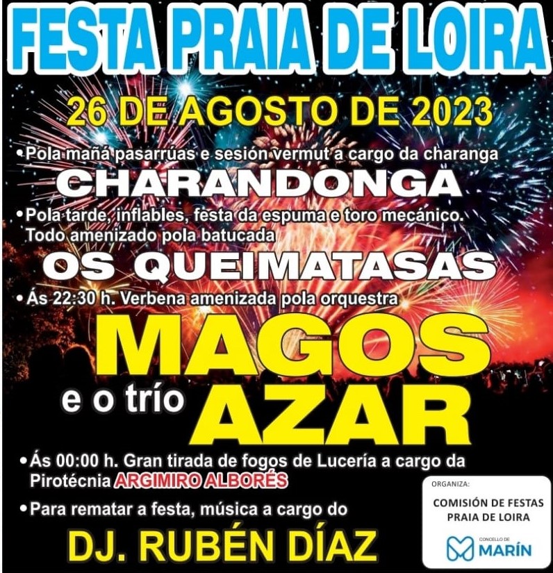 El próximo sábado la playa de Loira será algo más que una playa para el baño y la toma de sol porque se celebrará la tradicional fiesta de verano que tendrá como principal reclamo la tirada de fuegos de artificio que a la media noche iluminarán la playa y la ría siendo presenciados con toda seguridad por miles de personas que se acercarán a la zona como es tradicional.