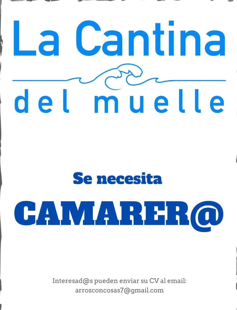Alfonso Díaz nos comunica que su “Cantina del Muelle” necesita camarero o camarera para completar el equipo de atención a sus clientes. En el cartel adjunto están los detalles de la oferta.