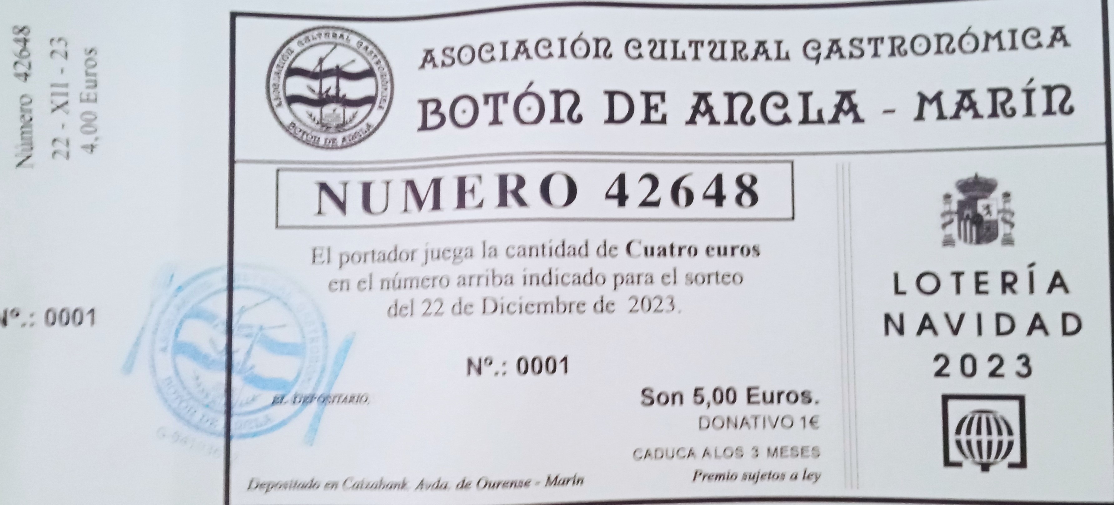 El número 42.648 es el elegido por la Asociación Botón de Ancla que preside Manuel Area para jugar en la lotería de navidad del próximo 22 de diciembre, Las participaciones son de cuatro euros y cada papeleta costará cinco, a beneficio de las actividades de la asociación mencionada
