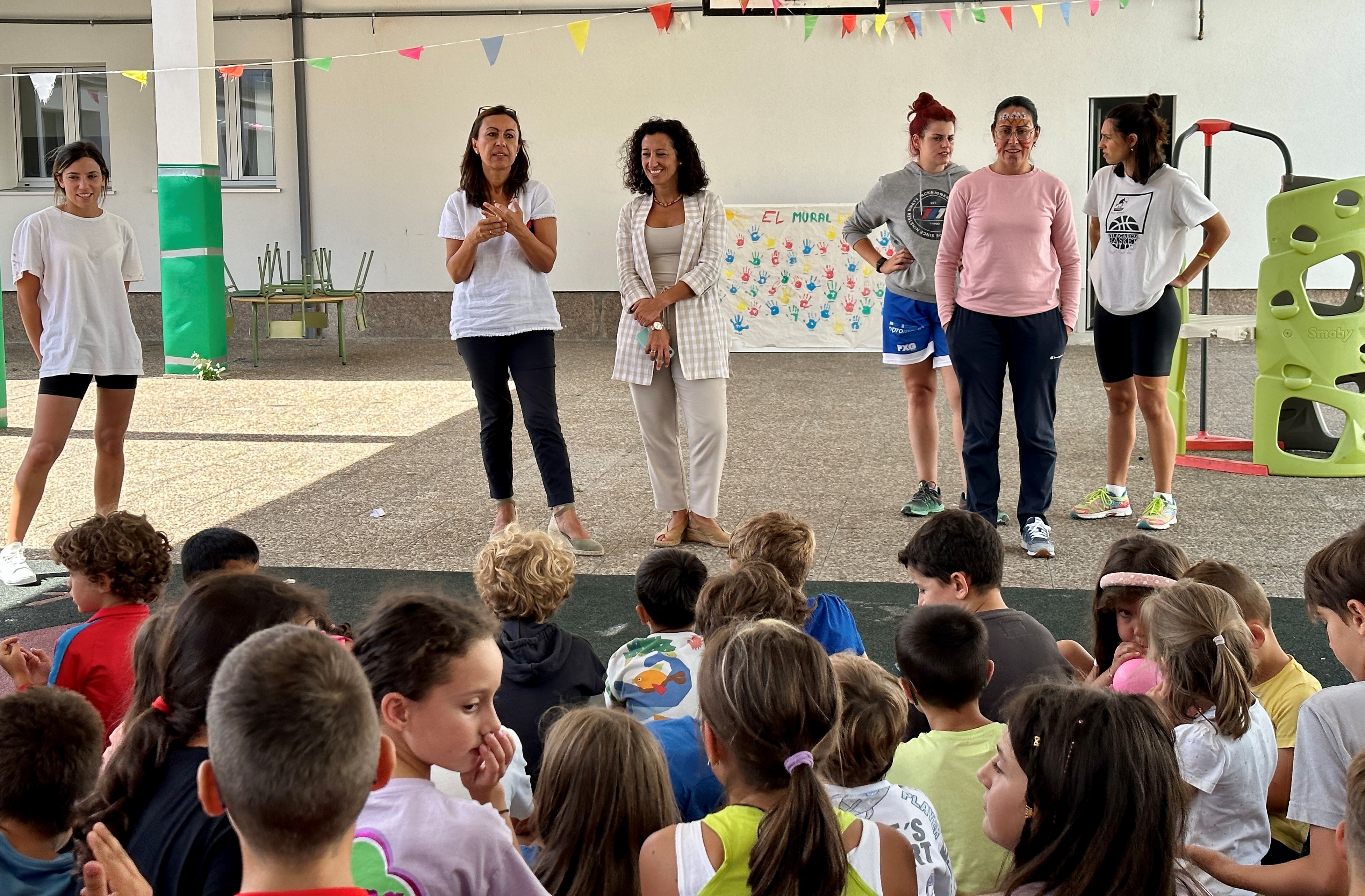 María Ramallo, alcaldesa de Marín acompañada de la concejala de Bienestar Social, Marián Sanmartín, visitó en el colegio del Sequelo a los participantes en el último tramo de los campamentos de verano. La regidora municipal al referirse al desarrollo de sta actividad descacó la actividad como “ unha ferramenta boísima e integral pois, por unha banda, os máis pequenos da casa desfrutan do verán socializando, facendo actividades e desenvolvendo o seu lado máis creativo e, por outra, as familias poden conciliar nun momento complexo como é o verán, cando o cole está parado e son moitas as horas que hai que repartir ao día entre as esixencias laboral e os coidados”.