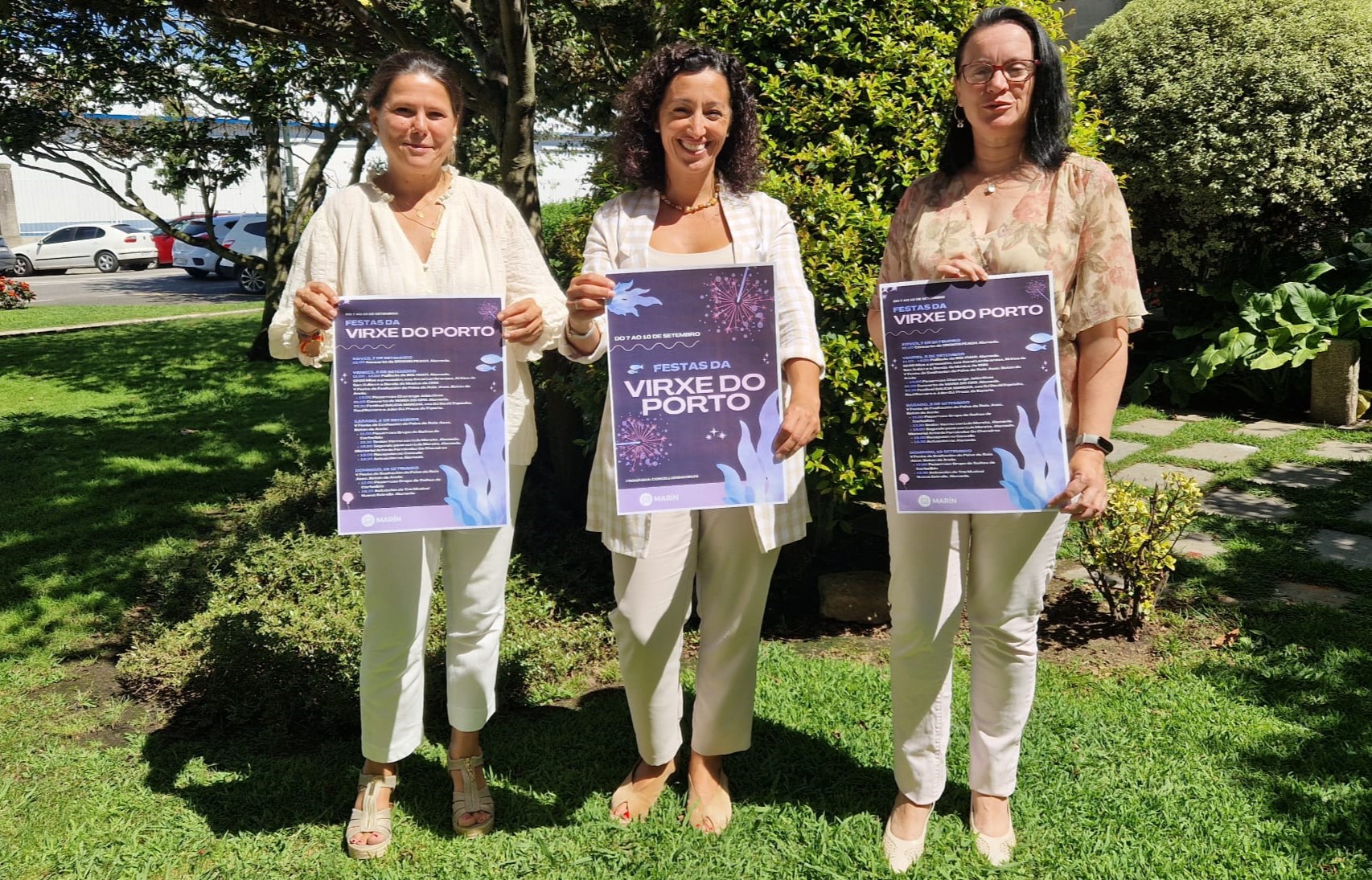 Ayer , la concejala de fiestas Marian Sanmartín acompañada de Mónica Viqueira e Itziar Álvarez, presentron la programación de las fiestas de Pa Patrona de Marín, Santa María del Puerto que tendrán luga entre los dias 7 y 10 de este mes, es decir el próximo fin de semana teniendo en cuenta que el viernes serà día feriado ya que es uno da de las dos fechas que el concello puede señalar como festivos en todo el año, siendo la ota la del Carmen
