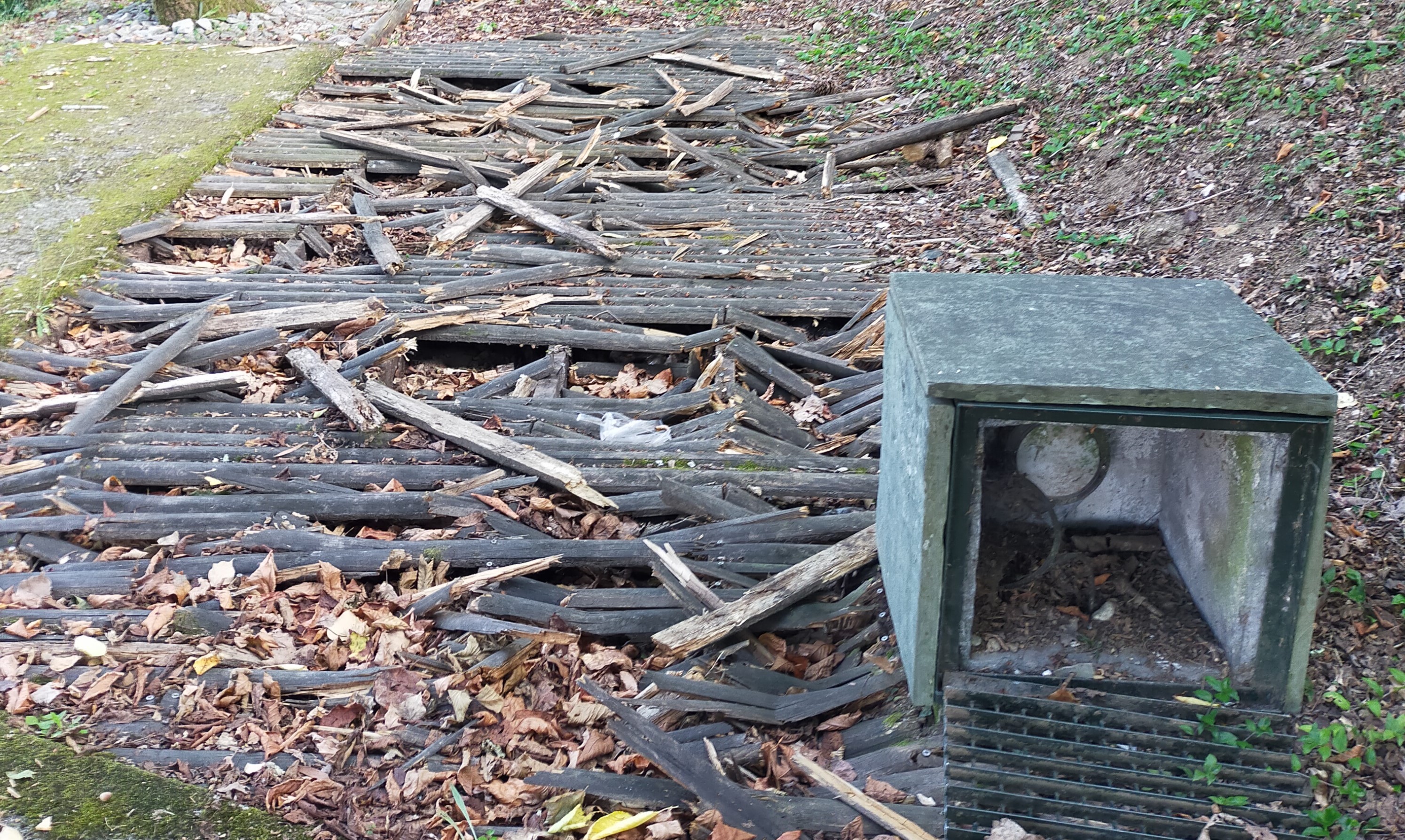 - A madeira que cubre o chan na zona do estanque está rota e a auga do estanque sucia por falta de limpeza.