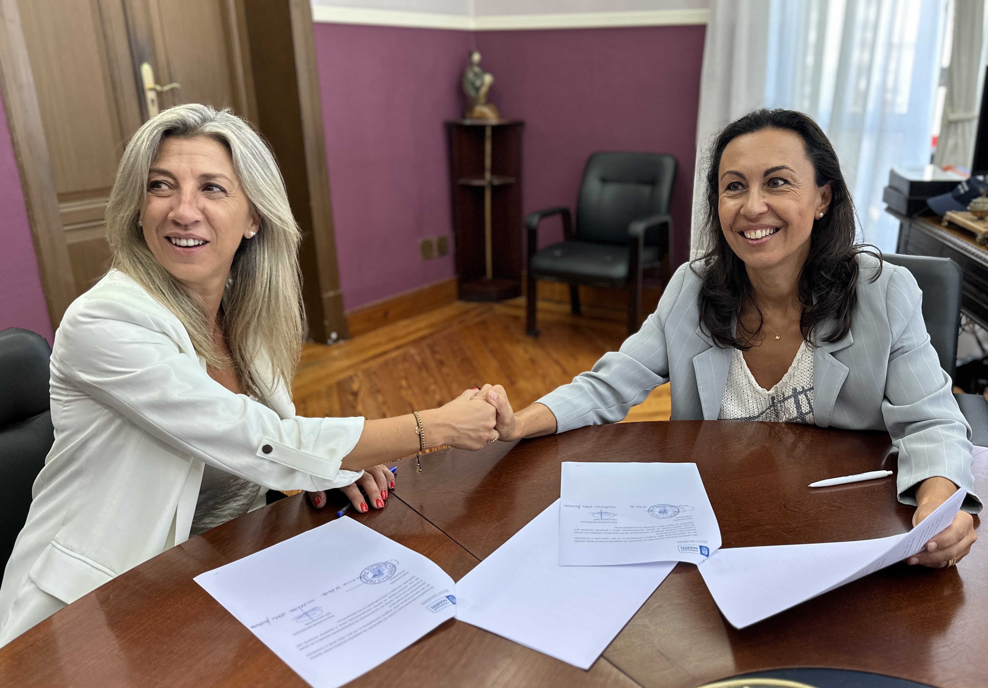 La alcaldesa María Ramallo firmó ayer nuevos convenios con entidades locales en este caso el Ateneo Santa Cecilia, el Marín Fut-sal y la asociación Estrela de Marín al objeto de colaborar con sus respectivas actividades durante el presente año