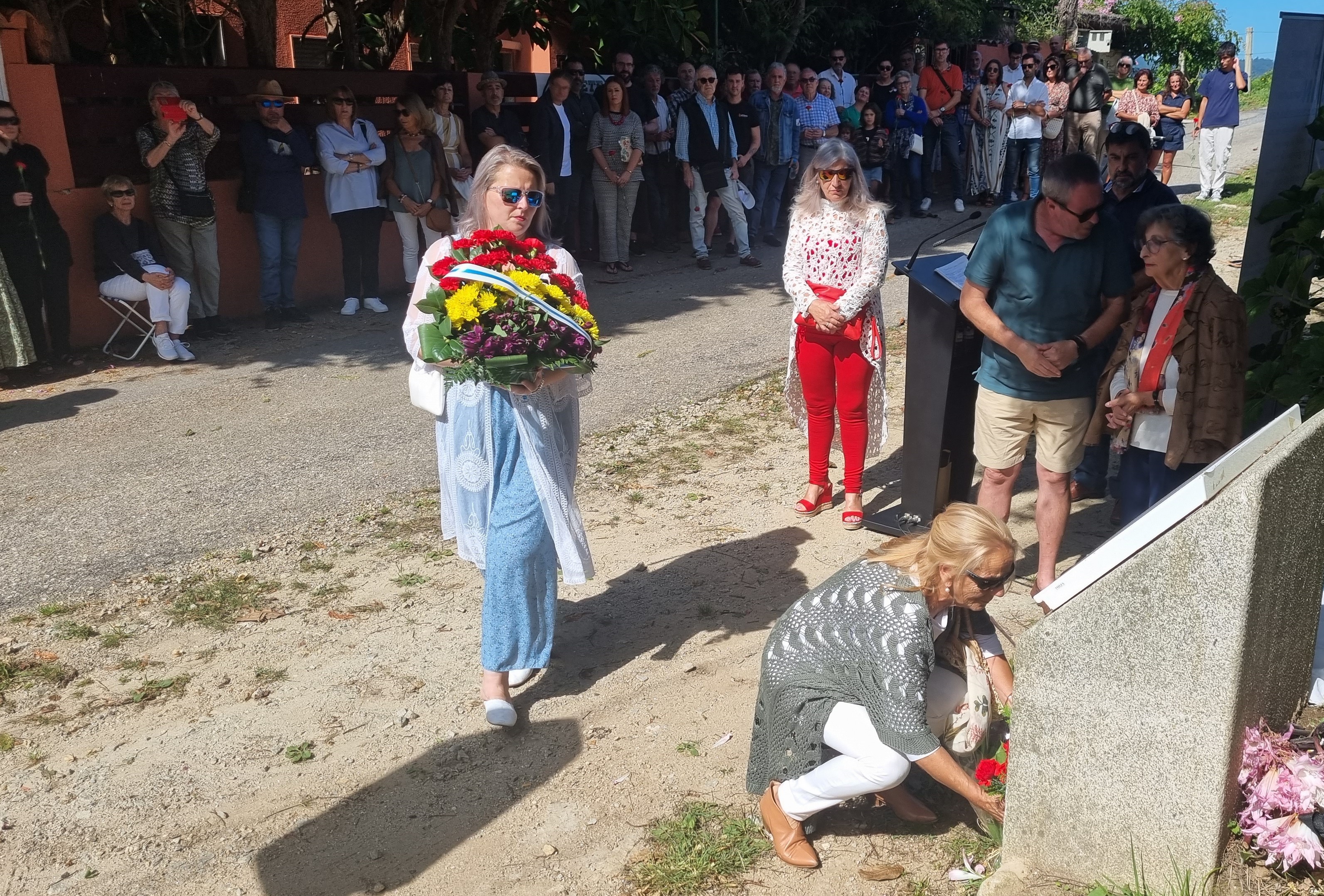 Durante el acto se realizó una ofrenda floral ante el monumento que recuerda a Carmen Pesqueira en aquel lugar empezando sus propios familiares para continuar con todos los demás presentes que depositaron claveles ante el monolito.