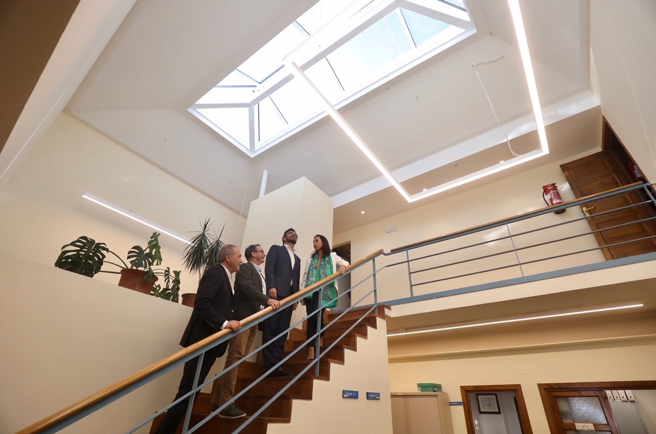 Según explicó el vicepresidente, “Para conseguilo substituíronse as carpinterías exteriores existentes por unhas novas de madeira laminada, con dobre cristal e estores, o lucernario da cuberta, tamén con dobre cristal, e as luminarias fluorescentes por outras de tipo led con control de presenza e, ademais, instalouse un cortaventos no acceso ao edificio cunha porta automática, reforzouse o illamento da cuberta e retellouse a ala norte que estaba en mal estado. Outras das melloras foron a colocación de novo falso teito no baixo e de varandas na rampla de acceso, así como o pintado das paredes dos espazos comúns”.
