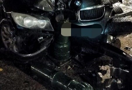 El "muñón" de la farola derribada por el turismo