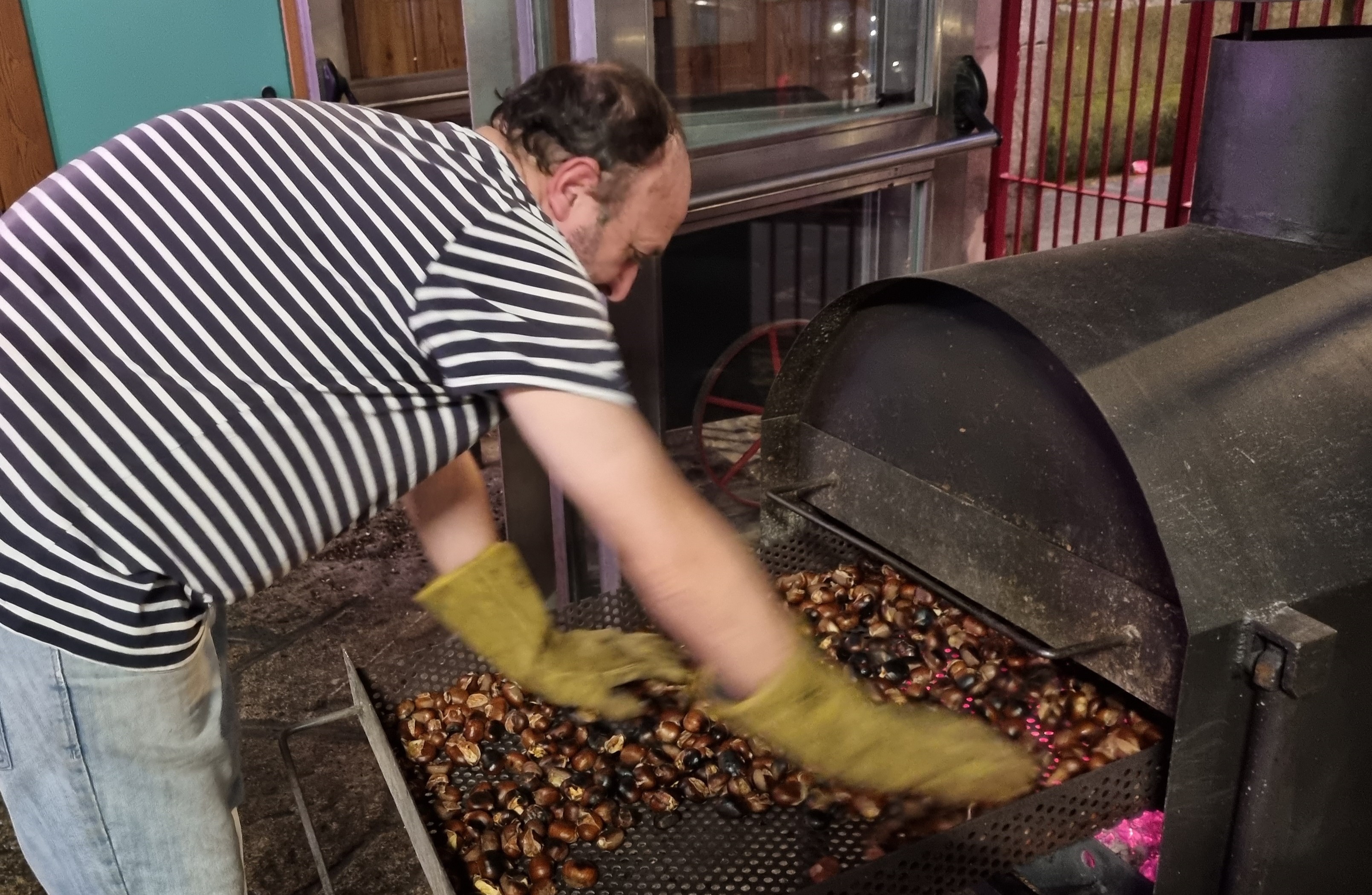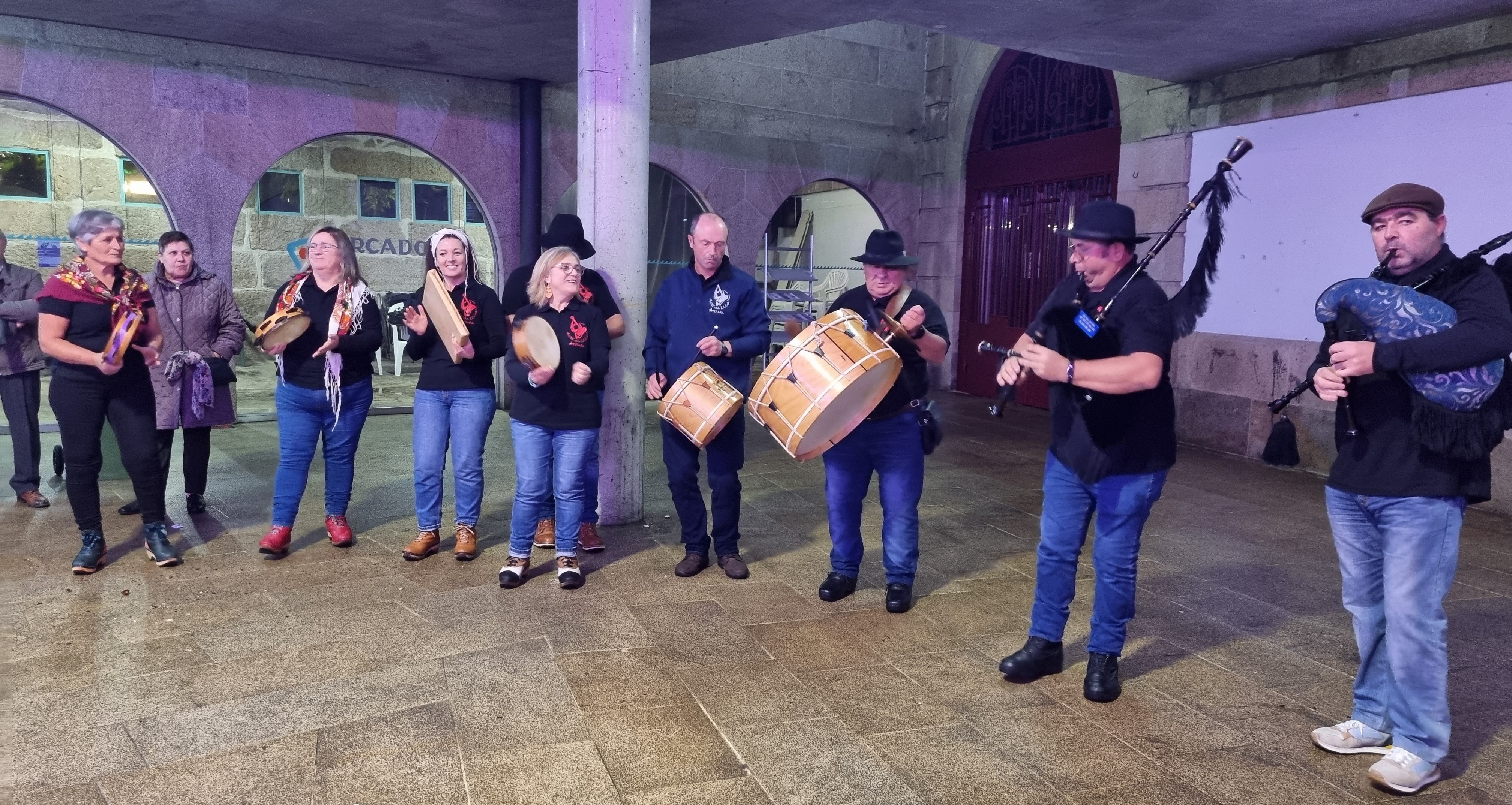 A las cinco de la tarde se puso en marcha el asado de las castañas del magosto de “Os Saljariteiros” cuyos componentes del grupo se encargaron del reparto tradicional a base de cartuchos una vez que las castañas iban saliendo de los trenecillos de Dibay Eventos que dieron abasto para satisfacer a las numerosas personas que acudieron a participar en el “serán” en el que no faltó la música que esta vez fue puesta por el grupo “Son da Illa”.