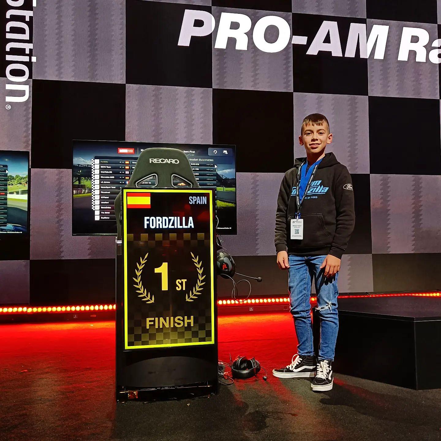 Abel Torres, el representante de nuestro equipo de simracing, Team Fordzilla, no podía participar en las finales generales por equipos debido a las reglas de la competición, que no admiten a menores de edad. Pero si podía hacerlo en la categoría Pro-Am que enfrenta de forma individual a pilotos profesionales y amateurs de todo el mundo. Abel, con gran superioridad, obtuvo la vuelta más rápida, venció en la carrera clasificatoria del sábado, y ganó la final del domingo para convertirse en el campeón del mundo en esta categoría, compitiendo siempre contra simracers adultos.