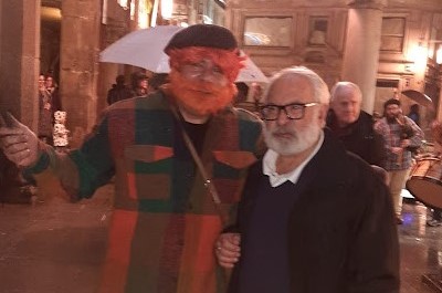 O Apalpador, agradecido, por el reconocimiento de su figura por una persona ajena al país (luego le relaté mi relación con él); me habló de Ramón Taboada Chivite, (licenciado en Geografía e Historia por la Universidad de Santiago, miembro de la Real Academia Gallega, correspondiente de la Real Academia de la Historia y miembro de la Asociación Española de Etnología y Folklore, además de vicepresidente del consejo del Museo del Pueblo Gallego, entre otros cargos en la vecina Portugal). Gracias a él -prosiguió- estamos procurando recuperar esta figura que uste bien conoce. Y aquí estamos, en esta noche pontevedresa, cantándole a los cativos, estas tonadas: