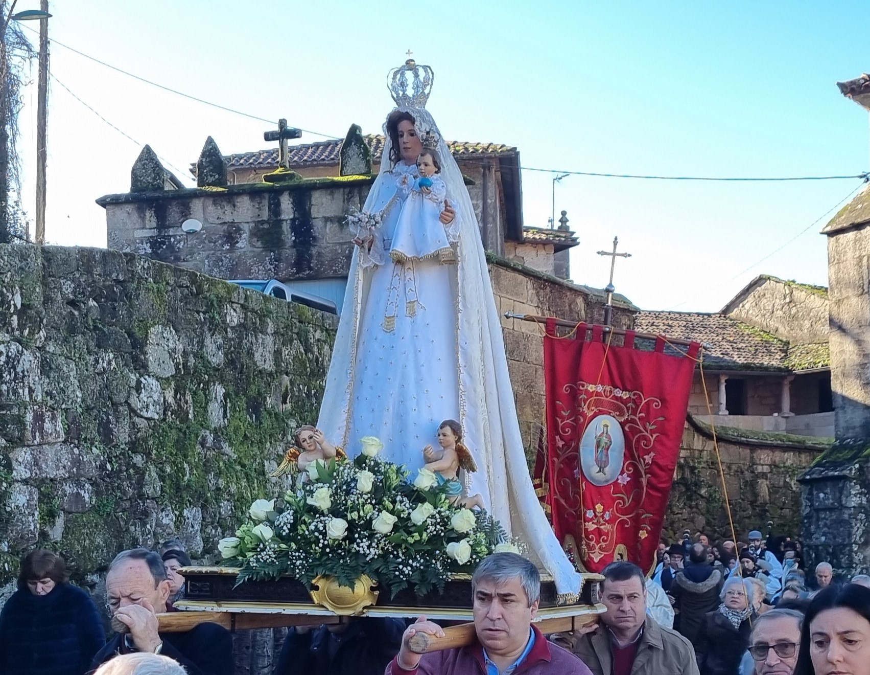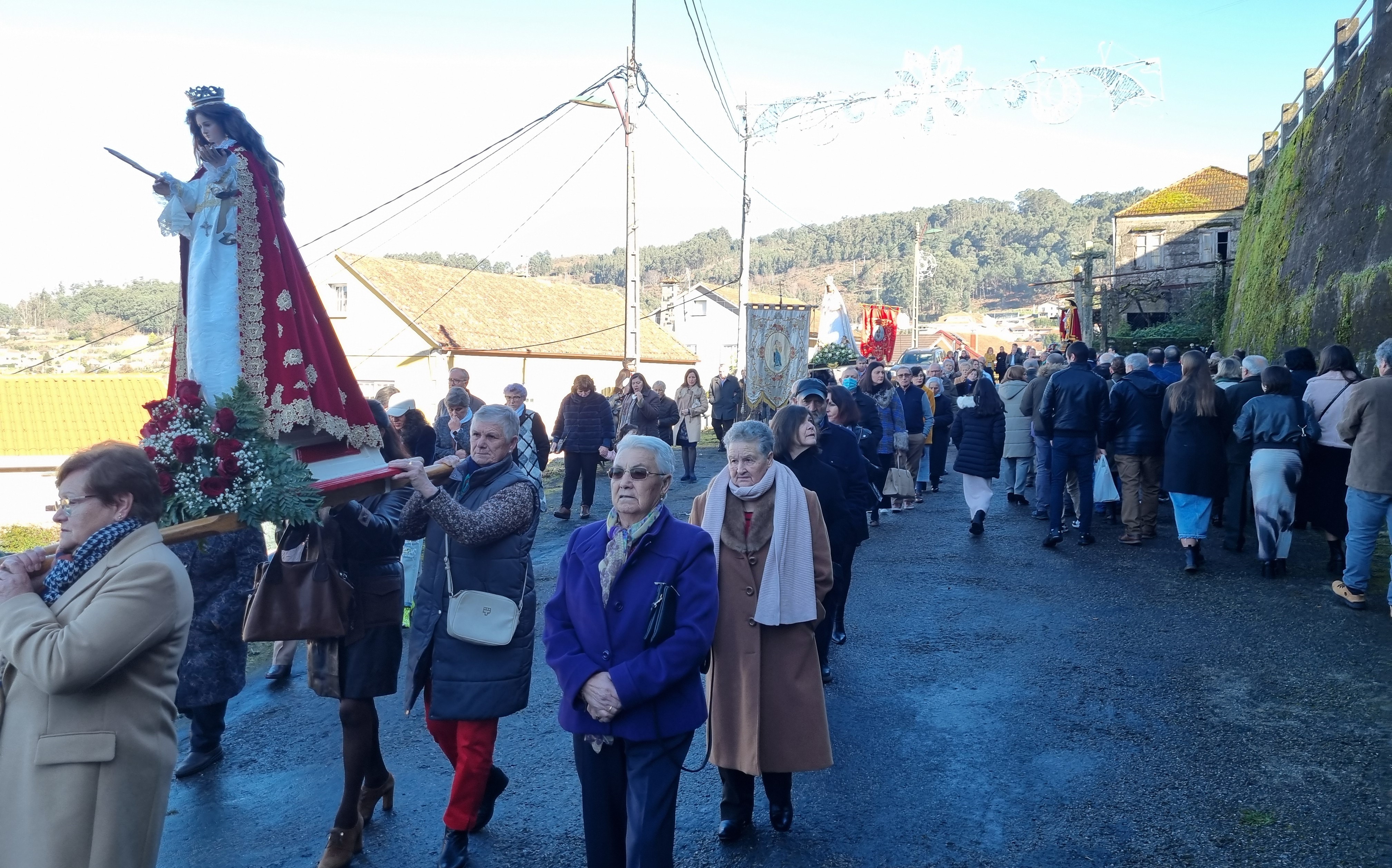El empeño de la Asociación de Amigos de San Xulián” en recuperar las tradiciones y el verdadero “ser” de esta parroquia, que fue la principal de Marín, históricamente hablando, ha dado sus frutos y, aprovechando que la fiesta coincidió en domingo y, además, un magnífico día, climatológicamente hablando, se recuperó la asistencia al templo y su espacio exterior para participar en la misa solemne que fue presidida por el sacerdote ahora encargado de esta feligresía, Ricardo Santos, así como en la procesión que sacó al Patrón y a las demás imágenes como de costumbre por el recinto del atrio con el ritmo musical puesto por “Airiños de San Xulián” que al finalizar la procesión procedieron a ofrecer un concierto.