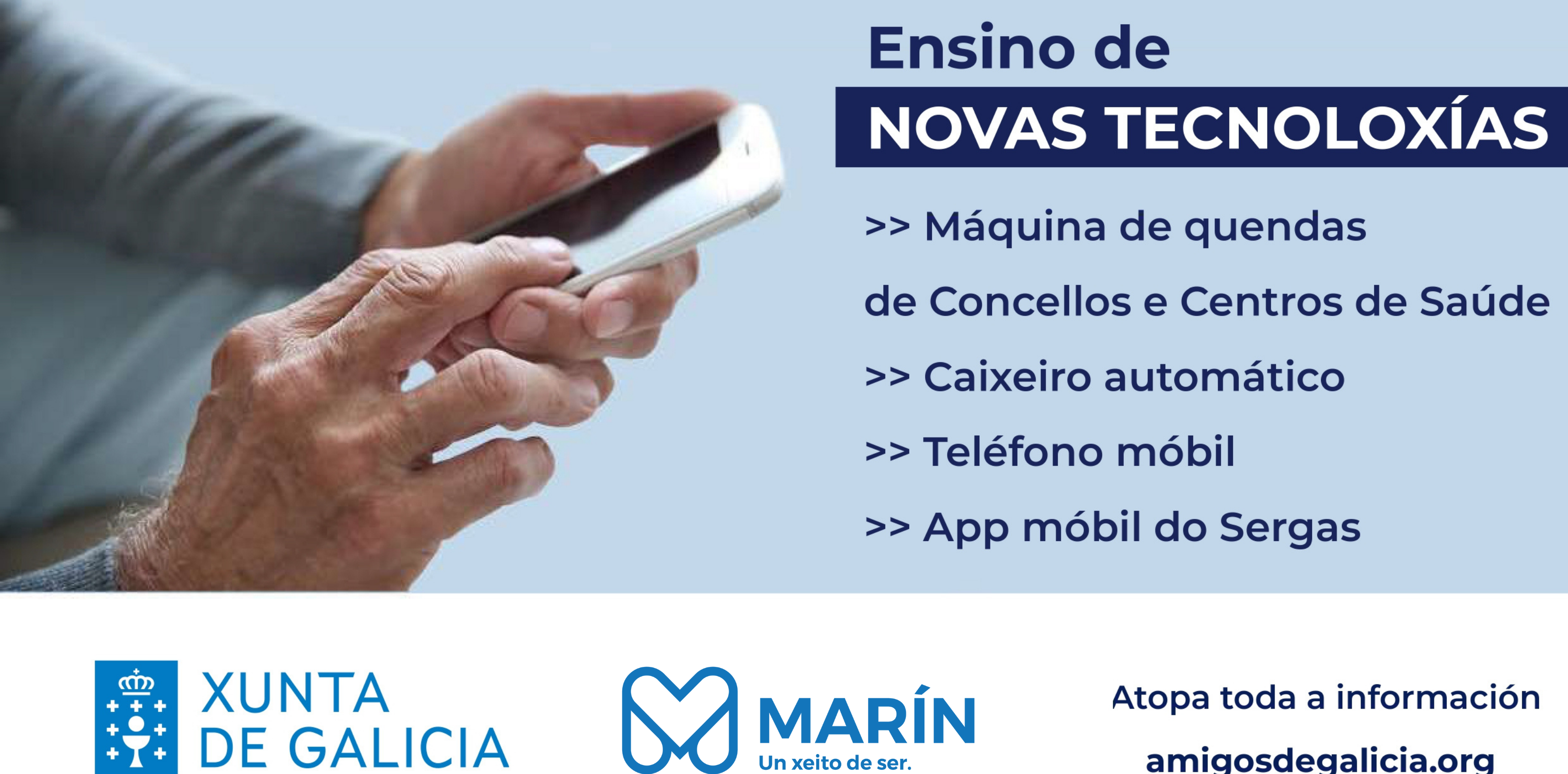 La misma fuente especifica “A formación centrarase en saber utilizar as máquinas de quendas de Concellos e dos Centros de Saúde, como operar co caixeiro automático das entidades bancarias, como usar e sacarlle partido ao teléfono móbil e como desenvolverse coa App do Sergas.