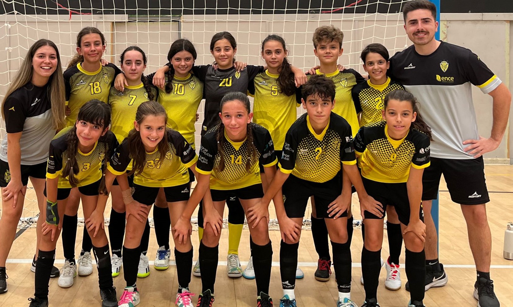 Este conjunto está compuesto por Iria Argibay, Aylen Belliard, Nerea Cousiño, Alba Crespo, Antía Dasilva, Lía Garrido, Noa González, Estrella Jiménez, Valeria Pazos, Noa Pazos, Aitana Reboredo y Alba Salgado, de las cuales el 80% han sido formadas íntegramente en el club amarillo desde que se iniciaron en este deporte.
