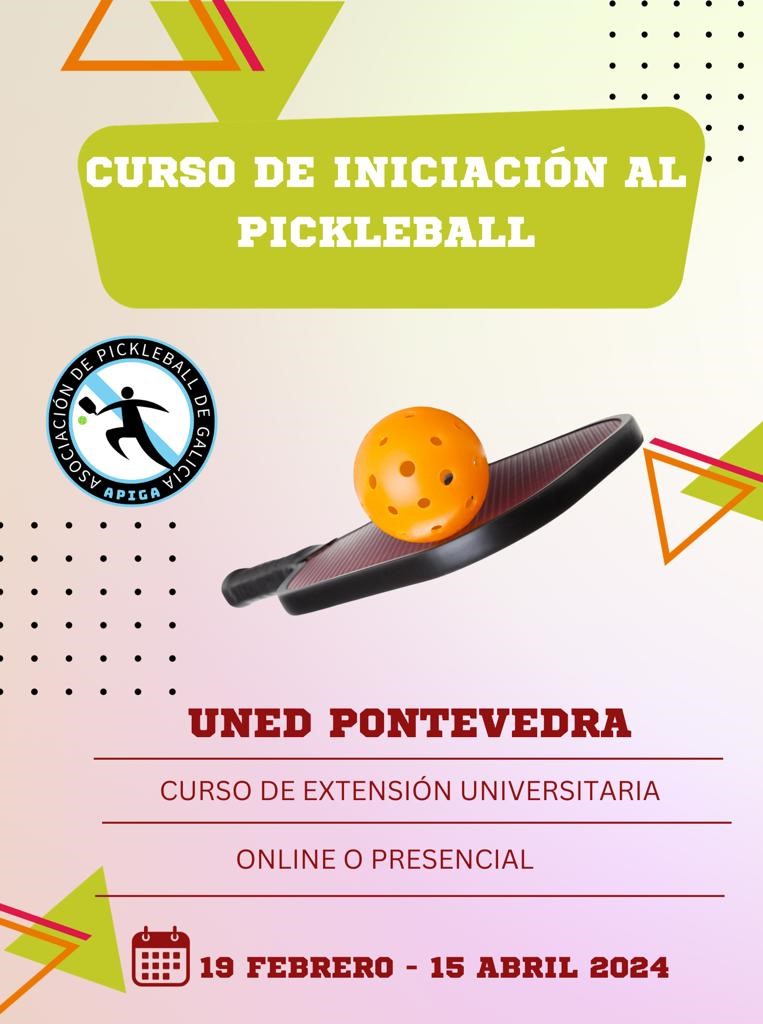Y nos comunica el propio José Carlos Otero López que, en este momento hay una magnìfica posibilidad de entender la razón y las ventajas del pickeball y aprender las técnicas del mismo mediante un curso de extensión universitaria de carácter “online” o “presencial” implantado por la UNED de Pontevedra entre los días 19 de este mes y el 15 de abril próximo. Consta de una parte teórica de veinte horas y otra práctica de cinco con lo que los asistentes podrán salir con perfecto dominio de su práctica.