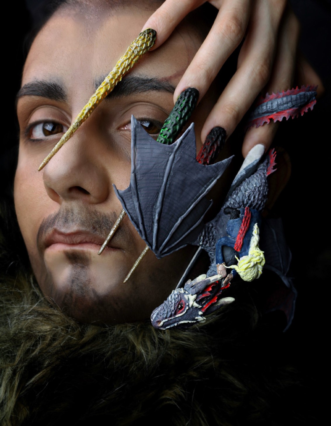 El otro premio que consiguió la artista marinense fue en la especialidad de PHOTOPOSTER y nos explica en que consiste: “Es una fotografía donde tienes que hacer una unión entre el maquillaje y las uñas con el protagonismo de esto último. En este caso la temática sobre la serie juego de tronos donde a mi prima (hija mediana de mi tío anteriormente citado) la he caracterice de chico y en las uñas hice un dragón y en las demás uñas represente los huevos de dicho animal y, en este trabajo lo he realizado yo íntegramente, maquillaje,puesta de uñas y fotografía”.