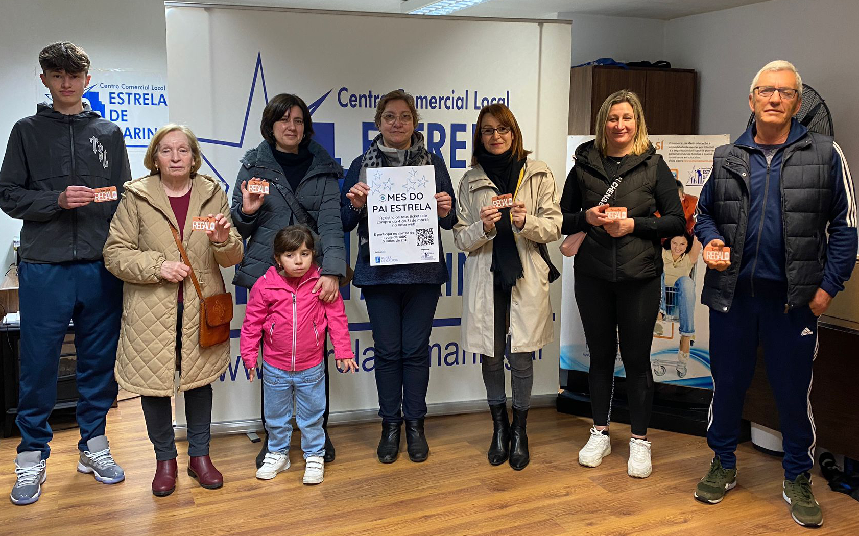 La asociación comercial “Estrela de Marín” tras haber cerrado una de sus campañas promocionales, esta vez aprovechando la celebración del Día del Padre, entregó ayer los premios que por sorteo de sus tikects de compra correspondieron a seis clientes del comercio asociado en distintas cuantías de los vales compra que les correspondieron en cada caso.