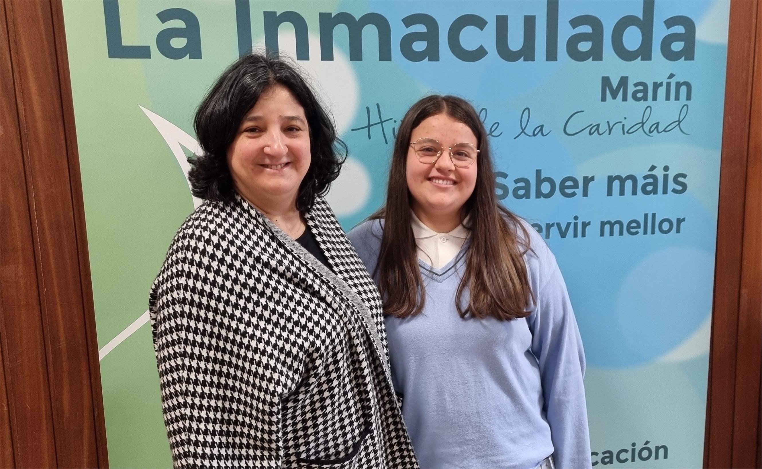 Ni que decir tiene que en el centro marinense reina una ran satisfacción por el éxito conseguido por esta alumna que aparee en la fotografía adjunta con su profesora Montse ayer en el propio centro