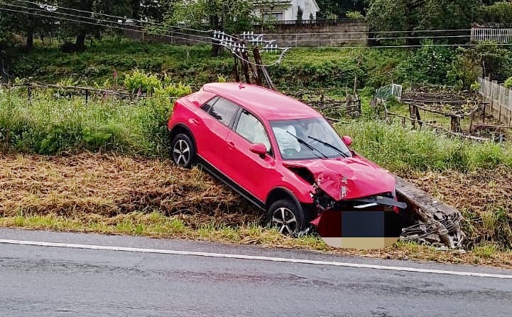 Ocurrió hacia las ocho de esta mañana, cuando la conductora de un vehículo marca Audi perdió el conocimiento por causas desconocidas y terminó impactando contra un poste de media tensión situado en la PO551 casi a la altura de la "frontera" con el municipio vecino de Bueu, donde el antiguo Bar Rimiñoto hoy conocido como La Posada de Lapamán. La mujer, vecina de la zona, estaba llegando a su casa, que está también en la zona, en el momento del suceso.