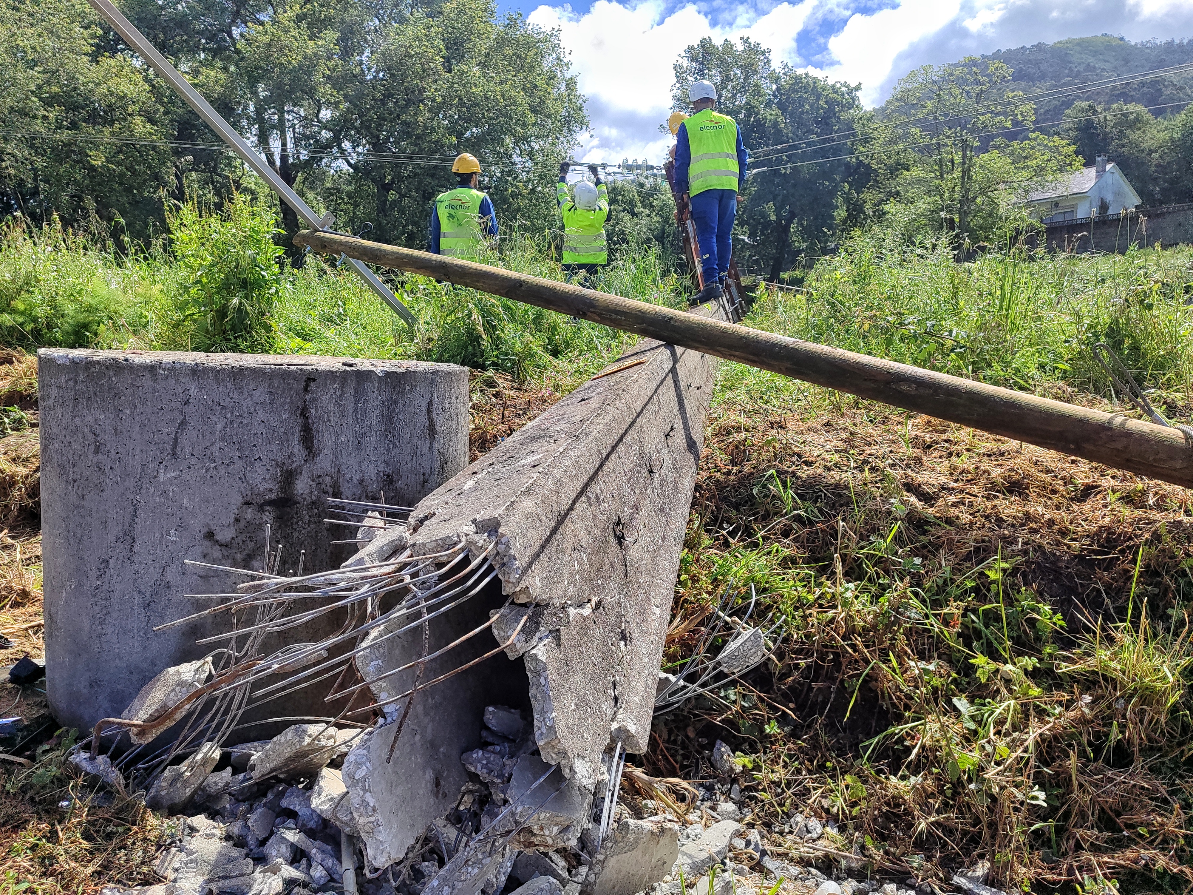 El siniestro dejó sin luz en un primer momento a gran parte de los abonados de Seixo, Santomé y O Campo, debido a la avería provocada en la instalación de conducción eléctrica; La compañía envió rápidamente efectivos para la reparación, que instalan durante el día de hoy un poste provisional para restablecer totalmente el servicio eléctrico y trabajan con numerosos medios materiales y humanos, (incluso con un camión para trabajar en las líneas de media tensión). Se prevé, según fuentes de la misma empresa reparadora, que el servicio quede totalmente restablecido hacia las tres de la tarde.