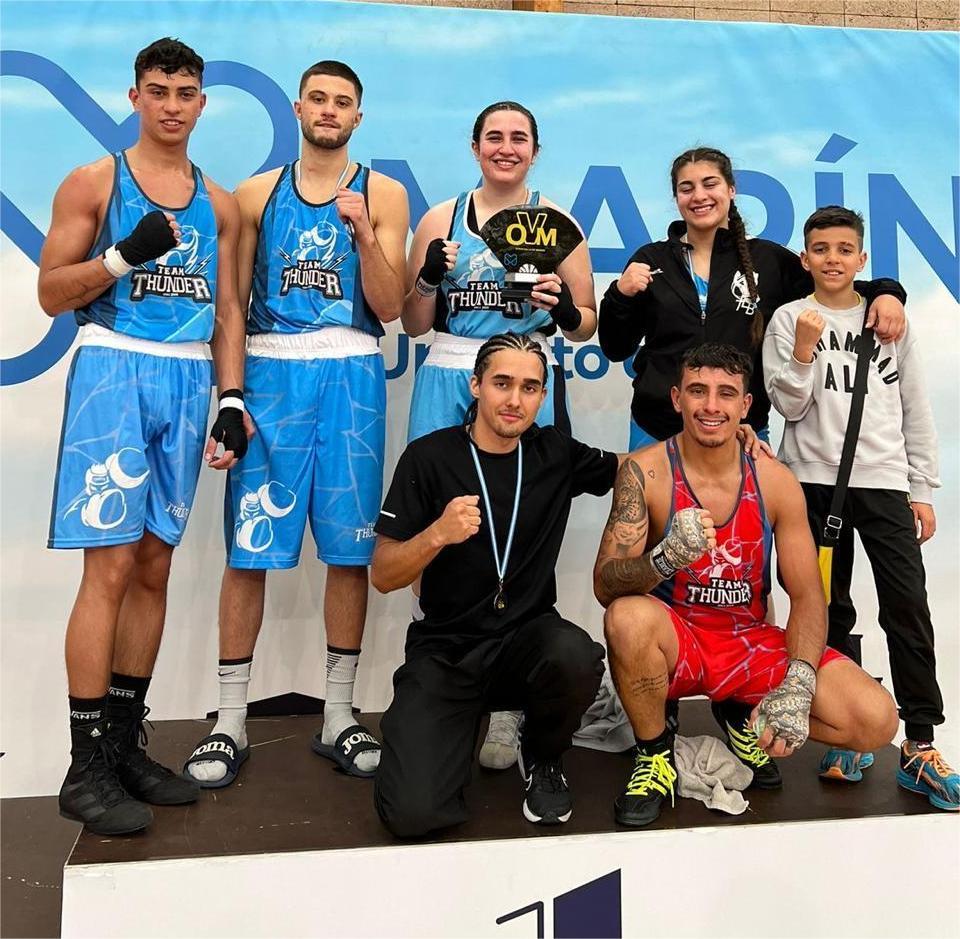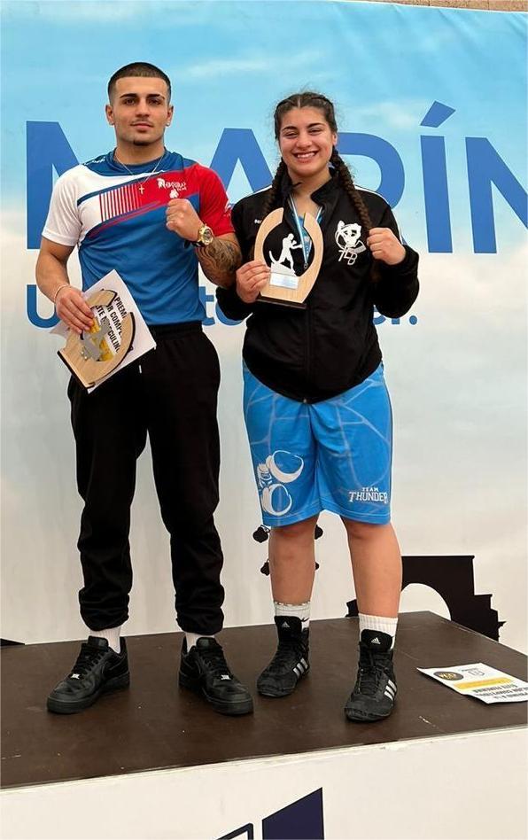 Fotos del reportaje:Juan Carlos Areal y Yohana Jiménez como mejores deportistas élite; Aarón González y Manuel Planas hacen entrega de las réplicas al Concello de Marín; El club Team Thunder de Marín como campeones por equipos del IV Open Villa de Marín al lograr un total de 6 campeones en el evento. Además fotos de otros equipos y podiums.