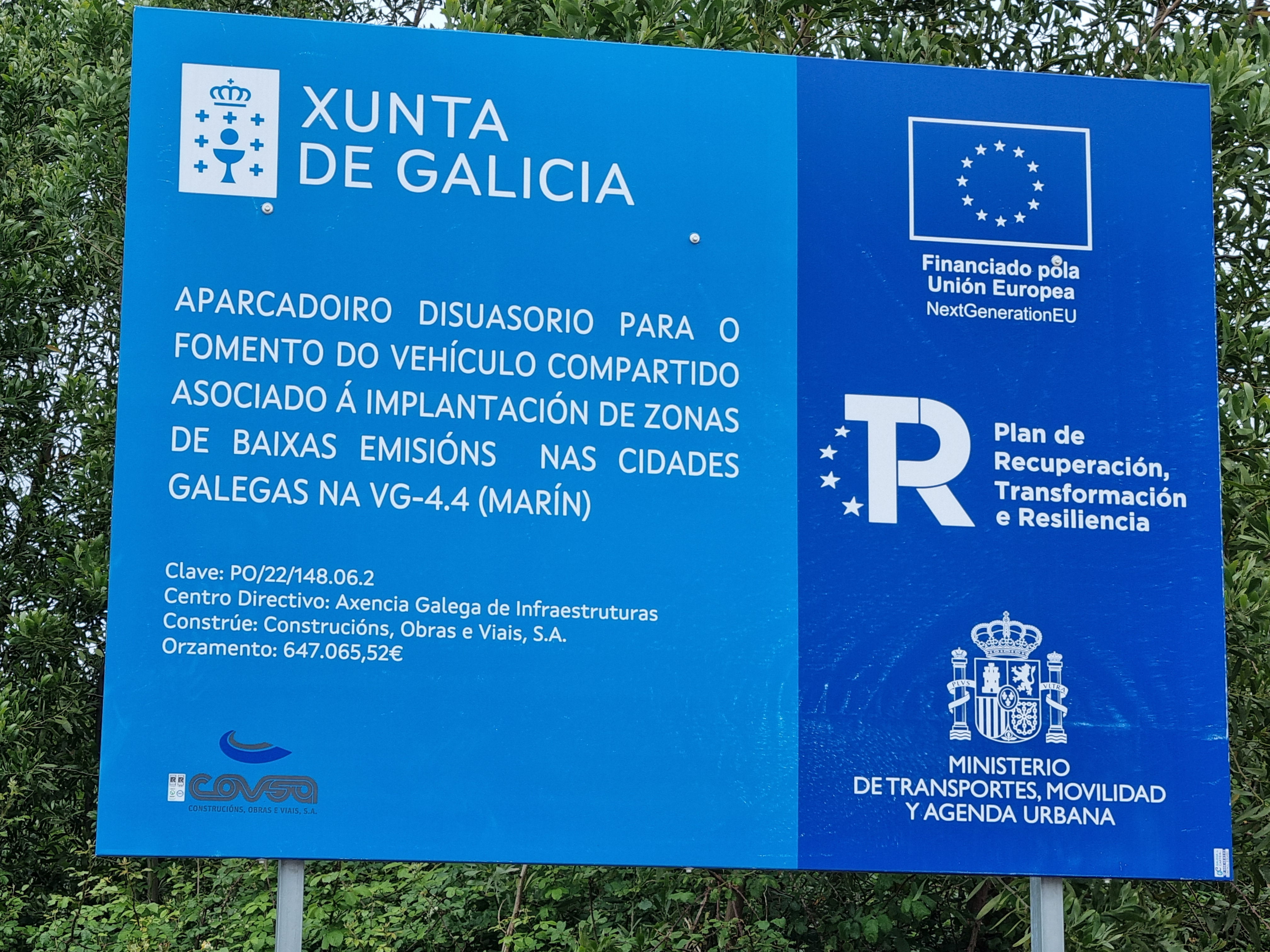 Con ocasión de la presentación de este proyecto en su día, hecha por el delegado territorial Luis López al que acompañaban la alcaldesa María Ramallo y otras personas, Luis López explicaba que la Consellería de Infraestruturas e Mobilidade realizaría este aparcadoiro disuasorio considerando que a súa construción, beneficiará de xeito directo aos máis de 24.000 habitantes de Marín”, estimando en nueve meses el plazo de ejecución de las obras en este espacio al que se accede a través de la carrtera provincial EP-1202. López anuciaba la inversión de 610.630 euros en las obras y en aquel momento de la presentación de las mismas estimaba que “Malia que o Goberno de España está a actuar de xeito unilateral, creando bastante confusión e inseguridade xurídica nos concellos coas próximas restricións de acceso de vehículos ás zonas de baixas emisións das cidades e dos municipios con certos índices de contaminación desde a Xunta estamos comprometidos coas accións contra o cambio climático, na defensa do medio ambiente e da mobilidade sostible e sempre cumprimos, nos adiantamos e buscamos darlle solucións aos cidadáns, moitos dos cales terán problemas ou simplemente non poderán entrar nos centros urbanos”.