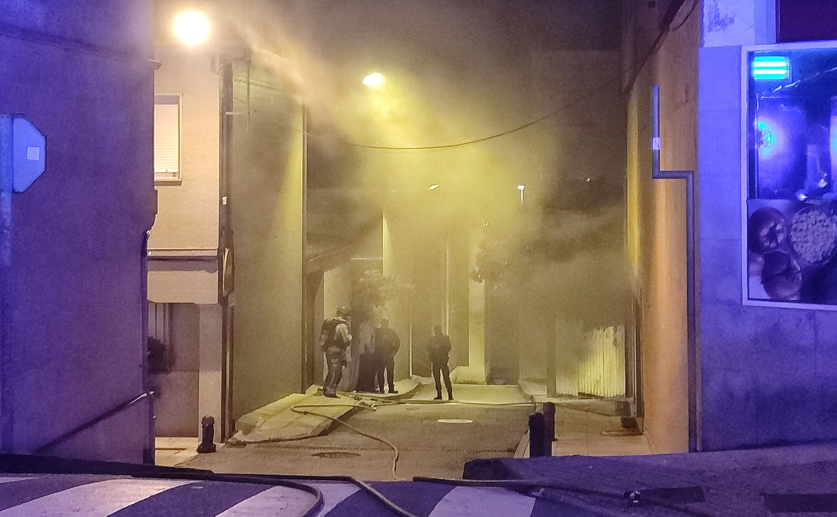 En el lugar del siniestro trabajan dotaciones policiales, tanto Nacional como Local y tres camiones de bomberos cuyos efectivos se turnan en la entrada al garaje debido a la temperatura y alta toxicidad para tratar de controlar el incendio lo antes posible.